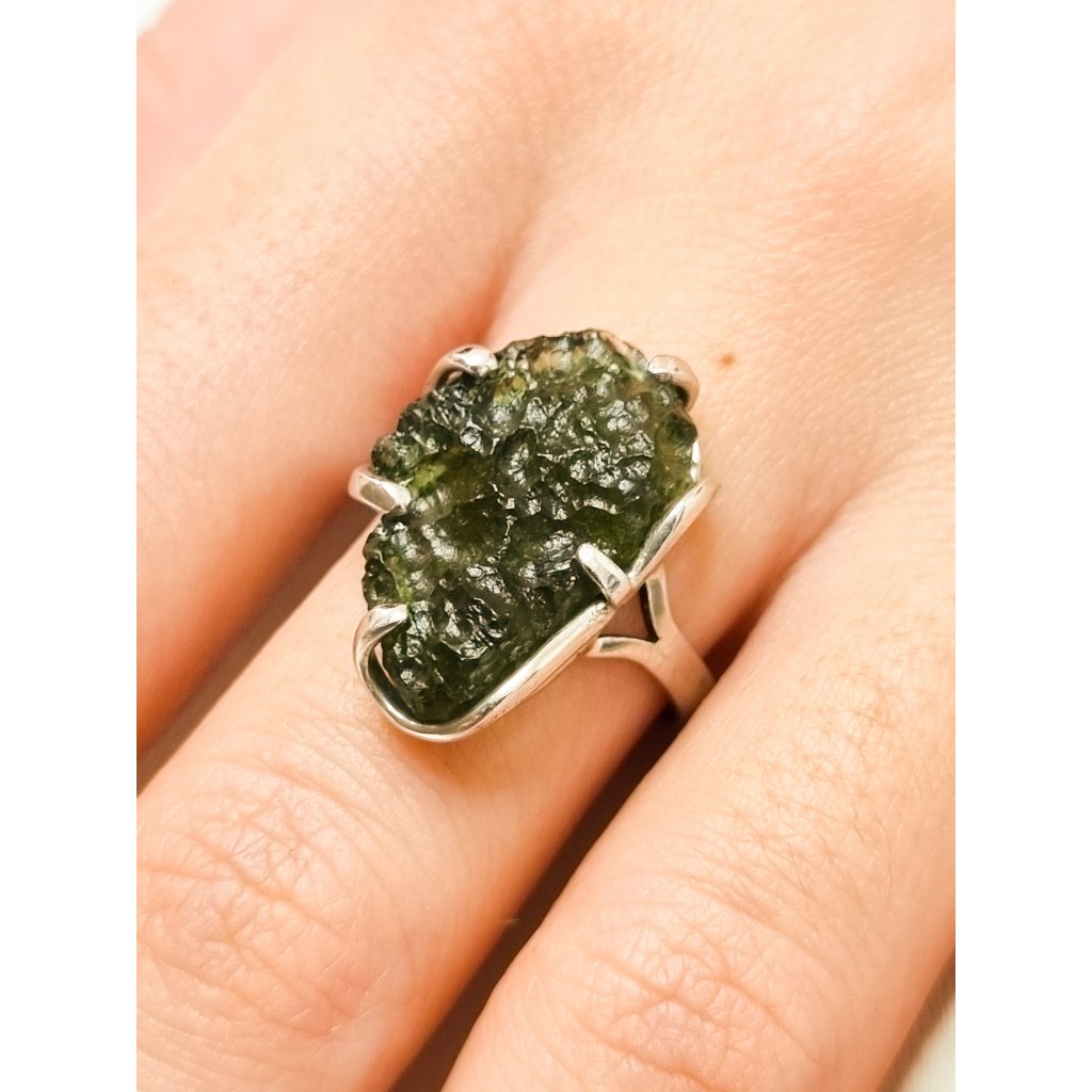 Stříbrný prsten s vltavínem P35 0065