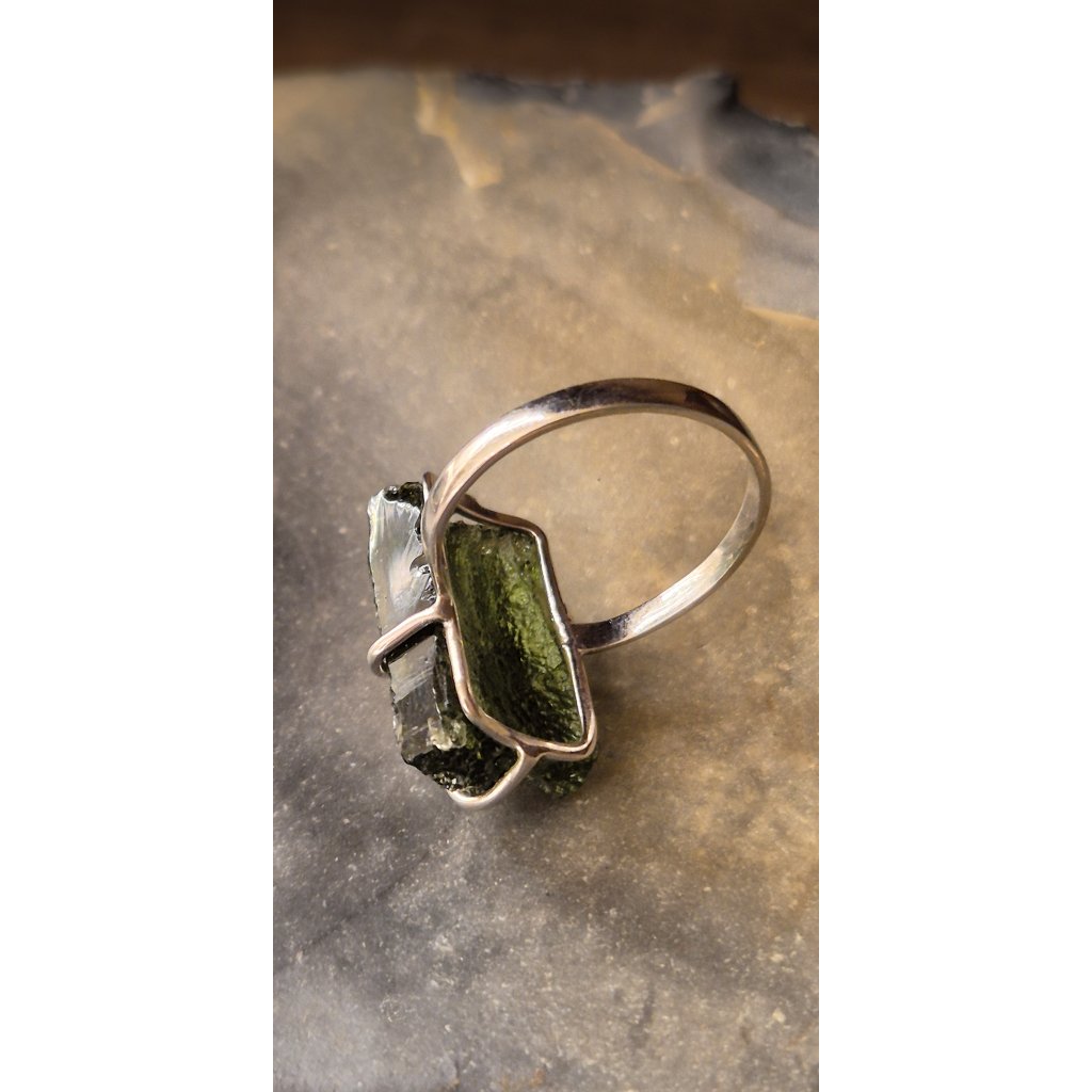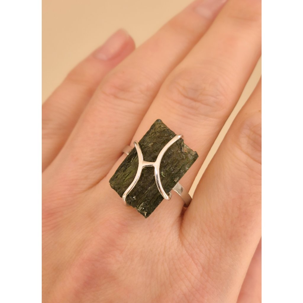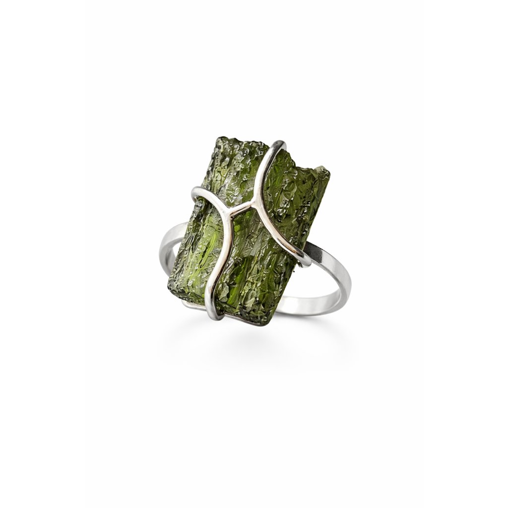 Pravý vltavín ve stříbrném prstenu – kouzelný kámen s mystickou silou.