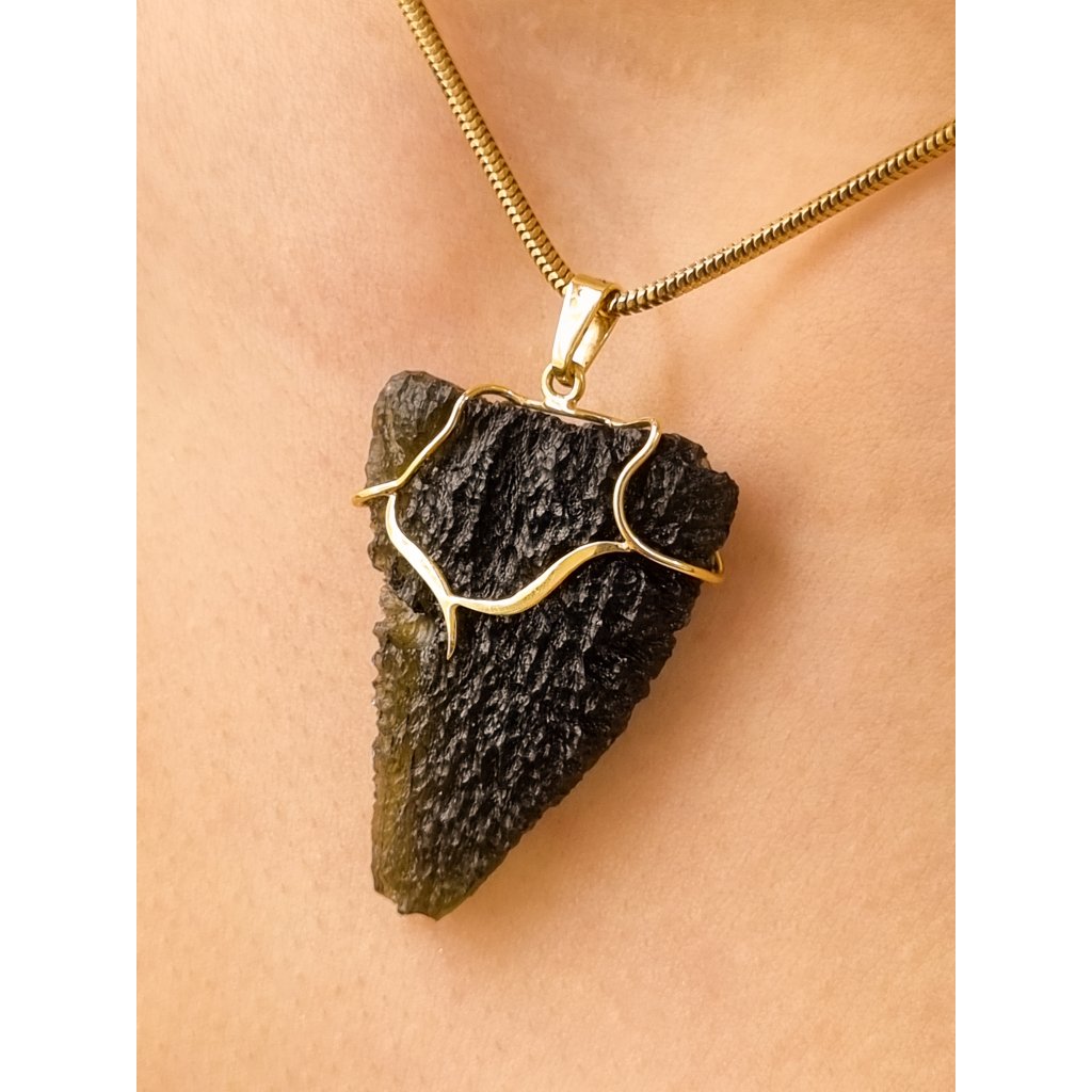 Výjimečný zlatý přívěsek s vltavínem 25 0012
