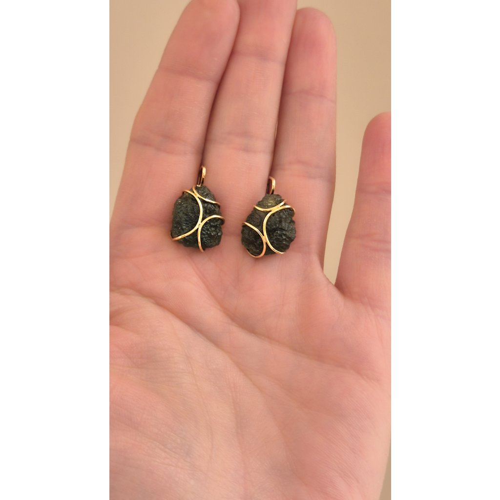 Zlaté náušnice s nebroušenými vltavíny P26 0007