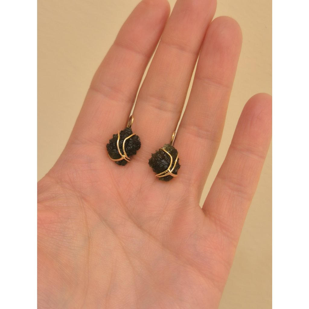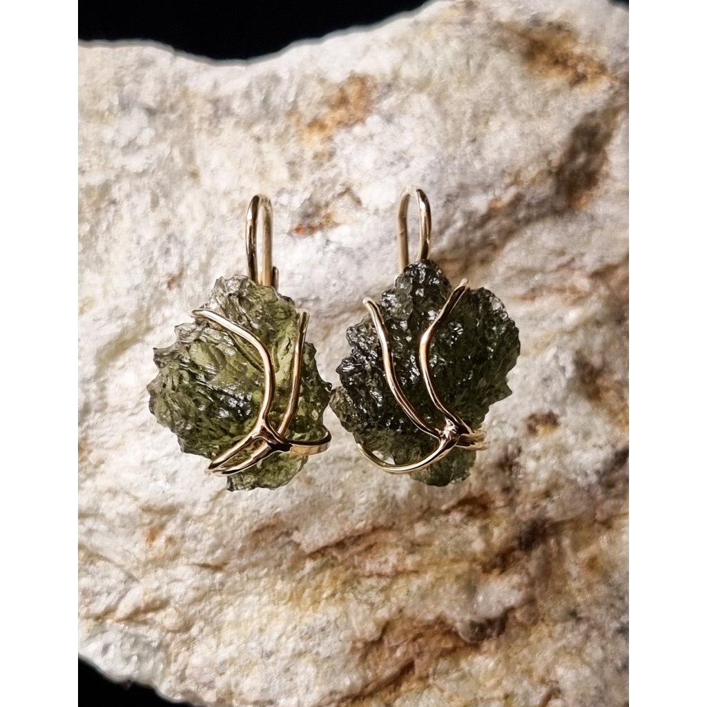 Zlaté náušnice s nebroušenými vltavíny P26 0008