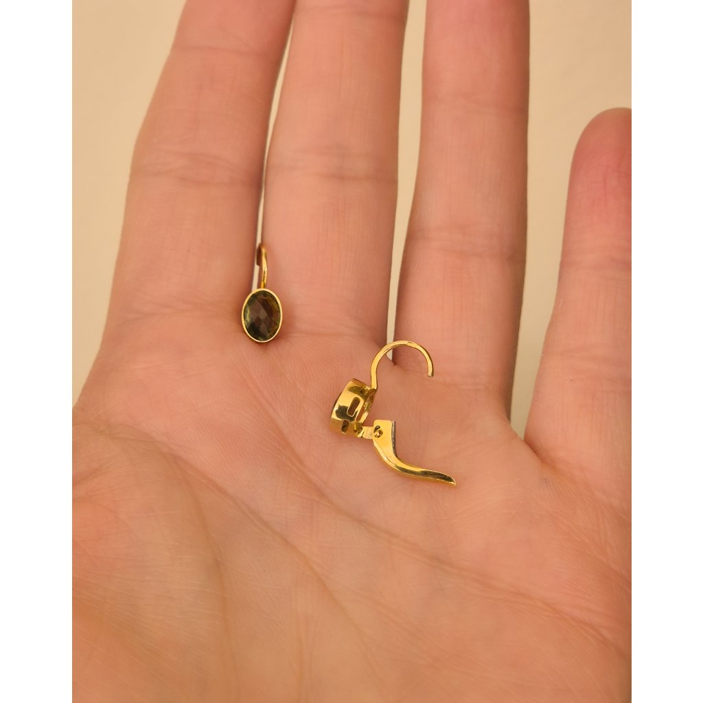 Zlaté náušnice ovál s broušeným vltavínem