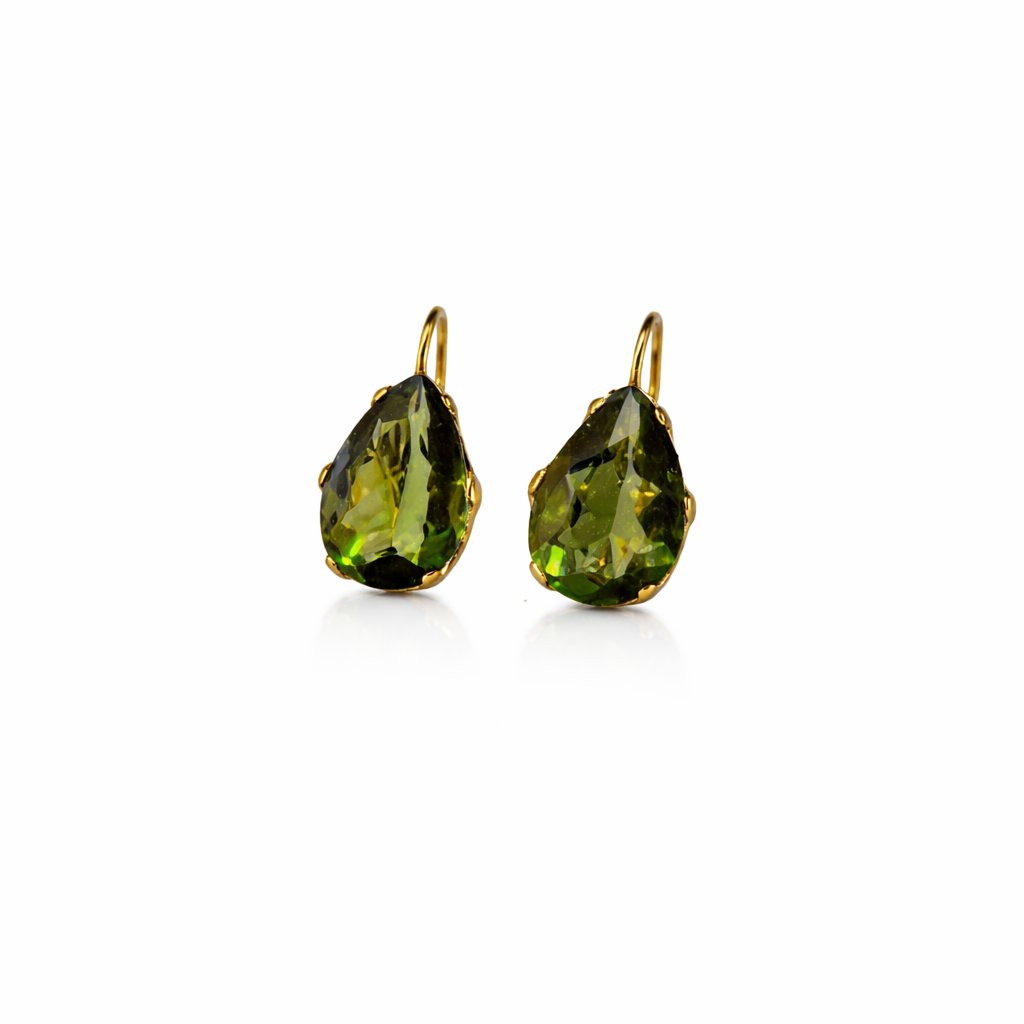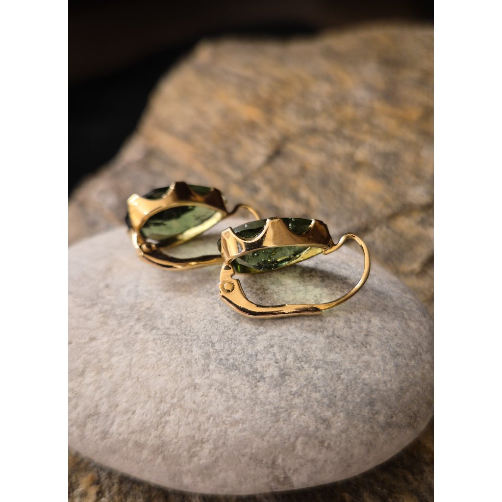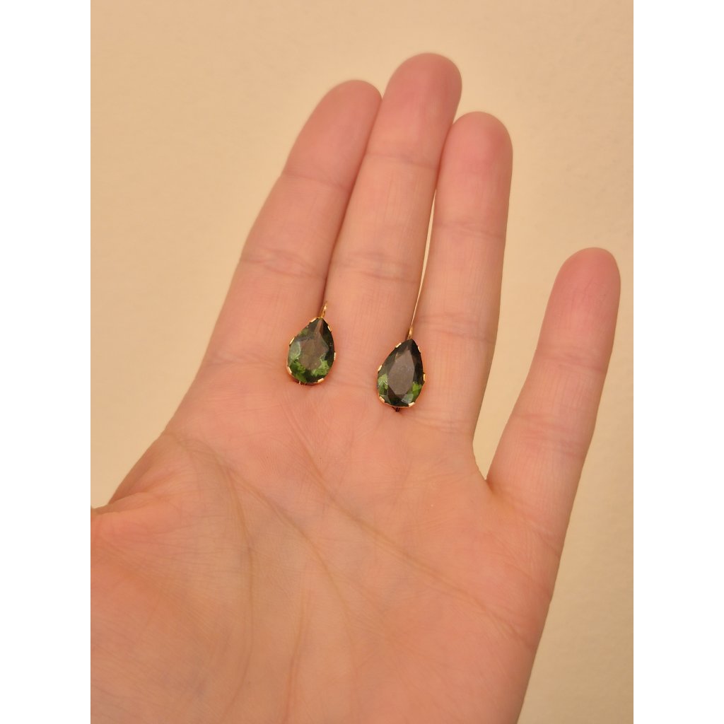 Zlaté náušnice s vltavínem ve tvaru kapek P20 0154