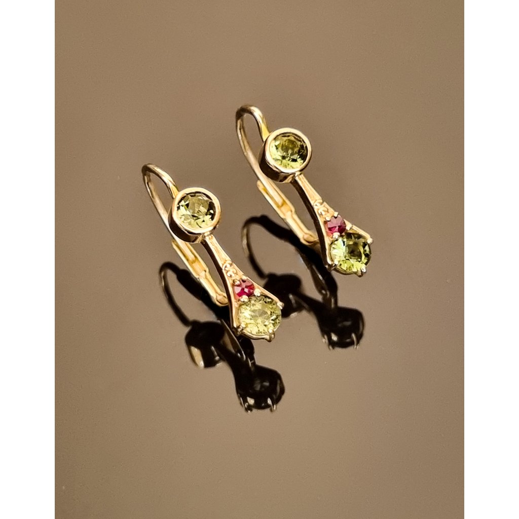 Zlaté náušnice s vltavíny a granáty 2000342260009