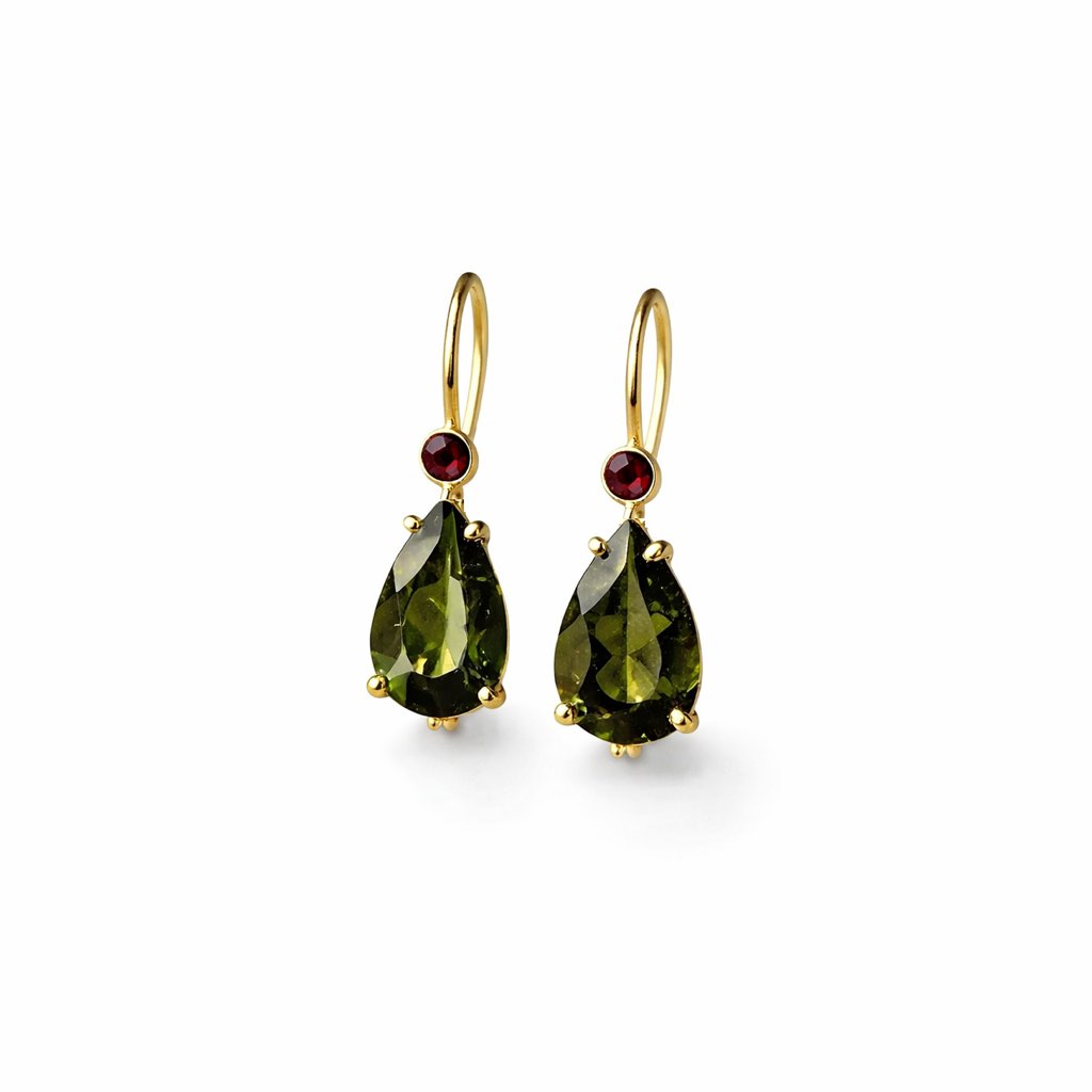 Zlaté náušnice s vltavíny a granáty P21 0110, P20 0155