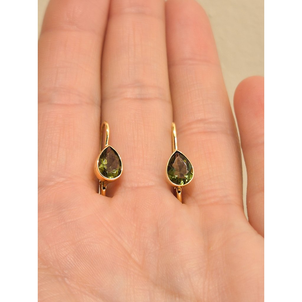 Zlaté náušnice s vltavíny ve tvaru kapek P20 0132