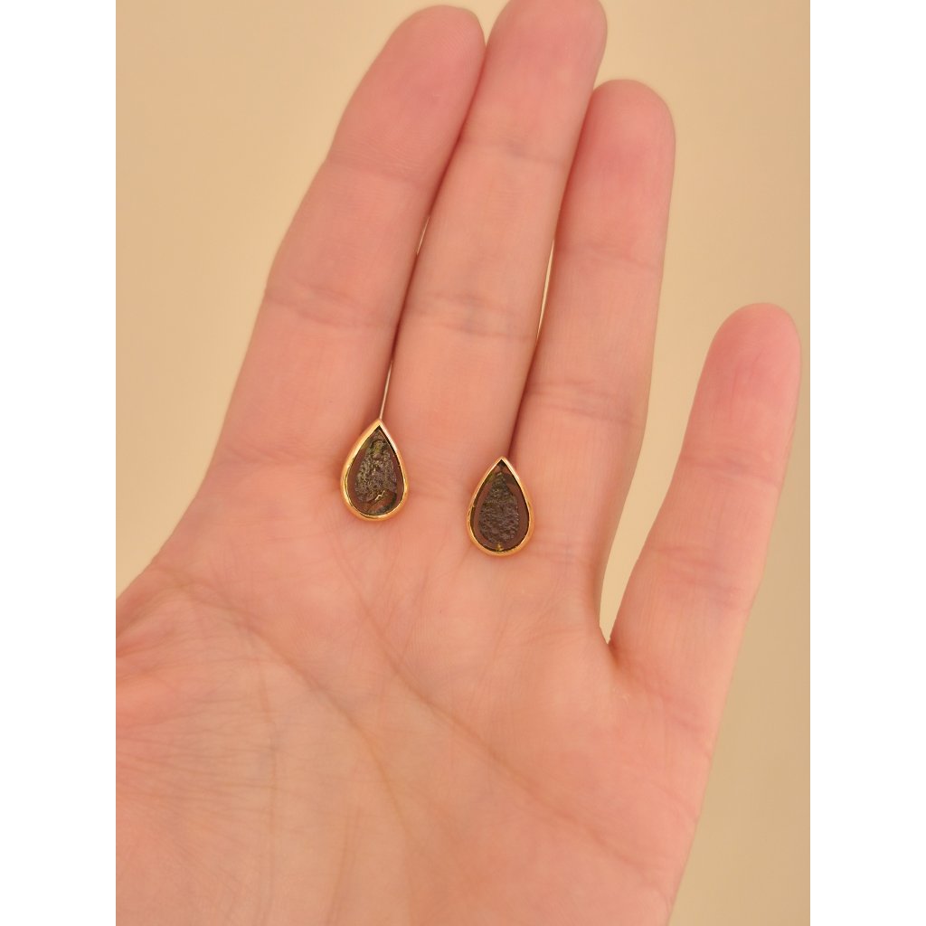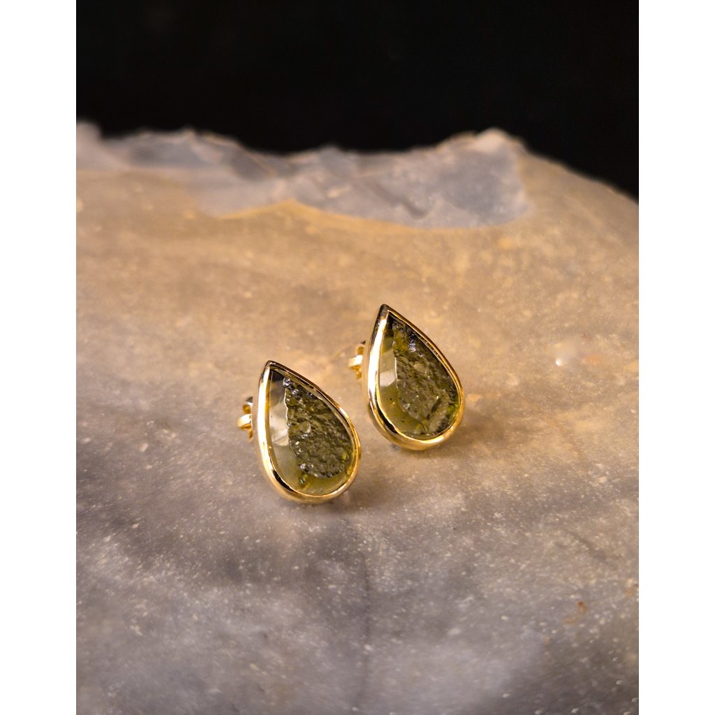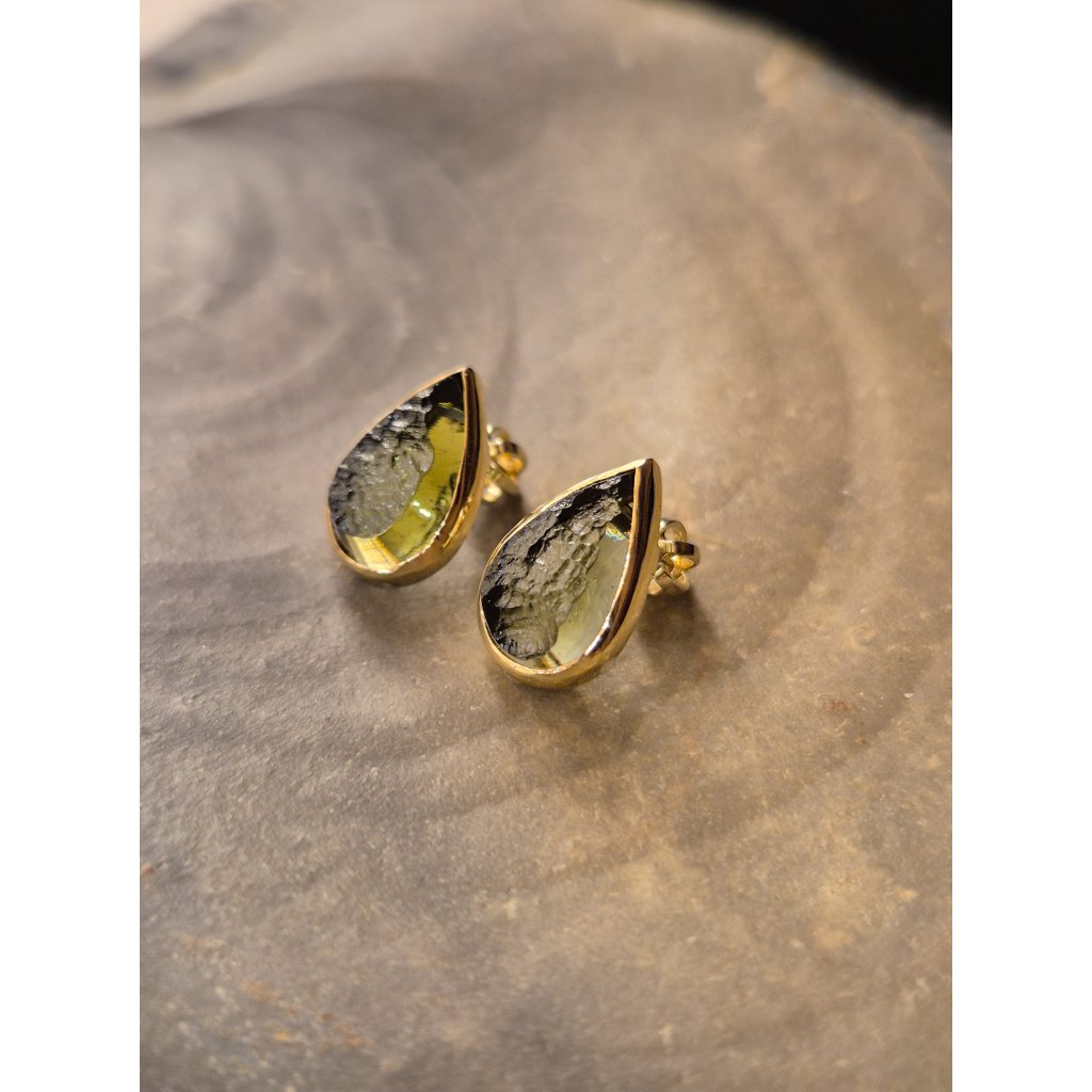 Tyto zlaté náušnice s polobroušenými vltavíny v sobě spojují syrovost přírody a jemnost precizního zpracování. Zvýrazní Vaši osobitost a dodají Vám neokoukaný, přirozený půvab.