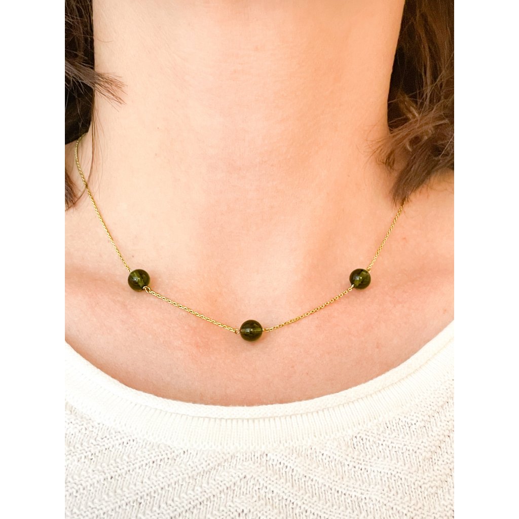 Zlatý náhrdelník s broušenými vltavíny P23 0025