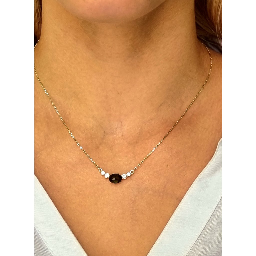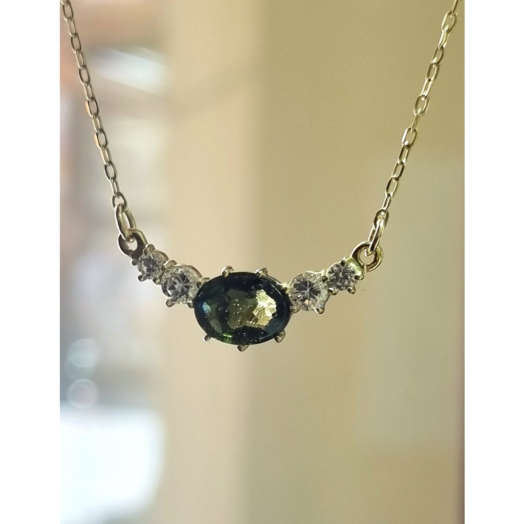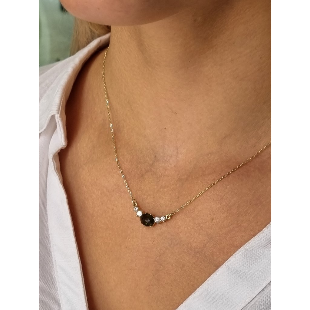 Zlatý náhrdelník s vltavínem a zirkony P23 0024