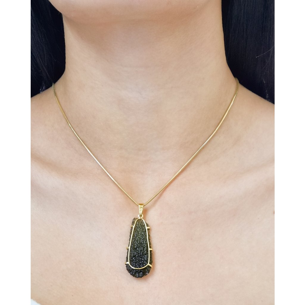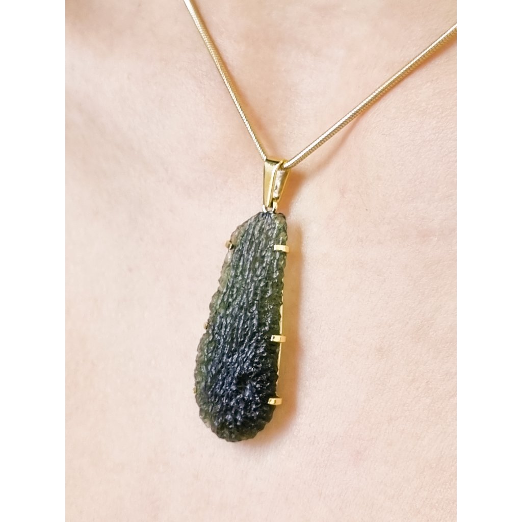 Zlatý přívěs s krásným přírodním vltavínem ve tvaru kapky P25 0125