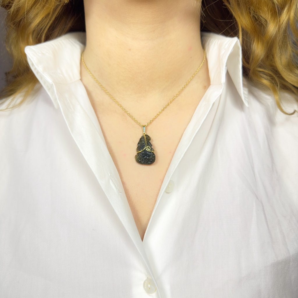 Zlatý přívěs s neopracovaným vltavínem 2000265210006