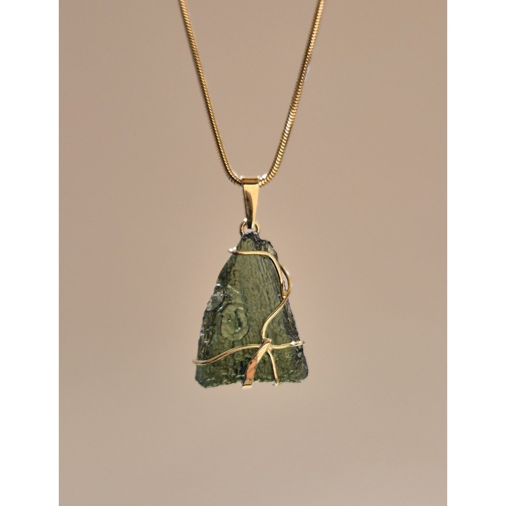 Zlatý přívěs s neopracovaným vltavínem P25 0122