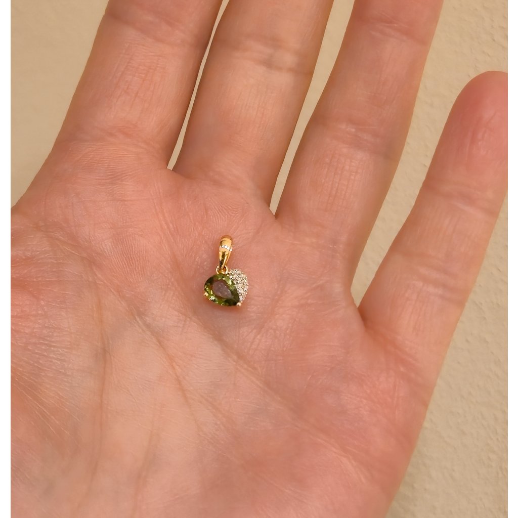 Zlatý přívěs s vltavínem a diamanty srdce 18051