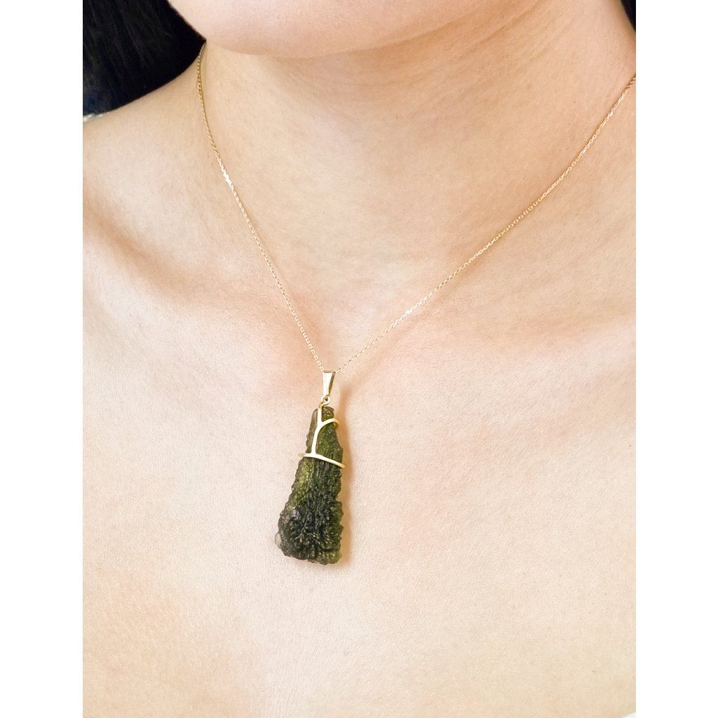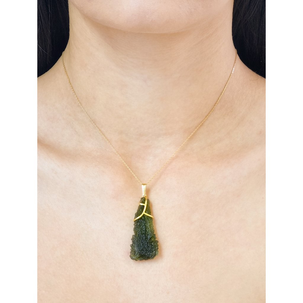 Zlatý přívěs s vltavínem s krásnou skulptací P25 0097