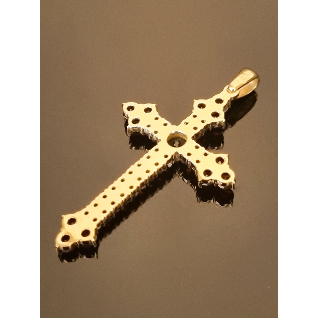 Zlatý přívěsek kříž s vltavínem a granáty P21 0045