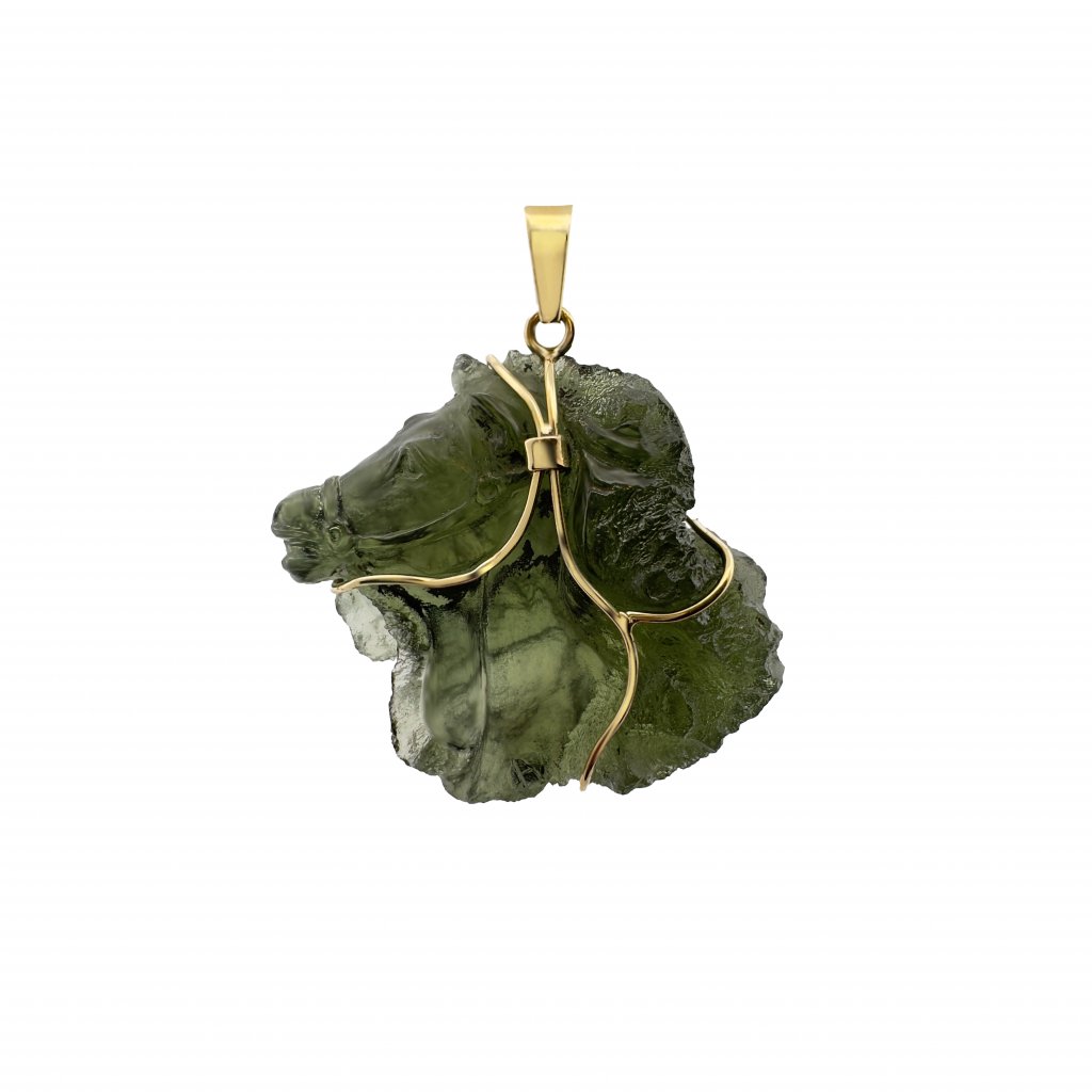 Zlatý přívěsek s vltavínem, glyptika, hlava koně 21 0039