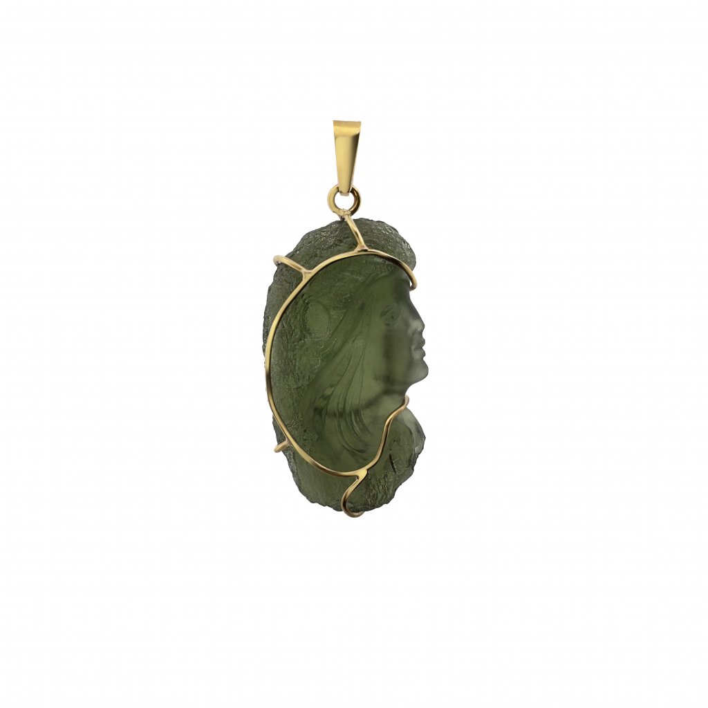 Zlatý přívěsek s vltavínem, glyptika, profil obličeje dívky s dlouhými vlasy P21 0037