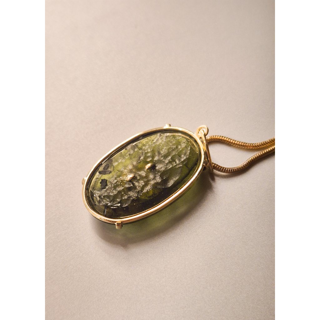 Zlatý přívěsek s vltavínem, ovál, polobrus P25 0025