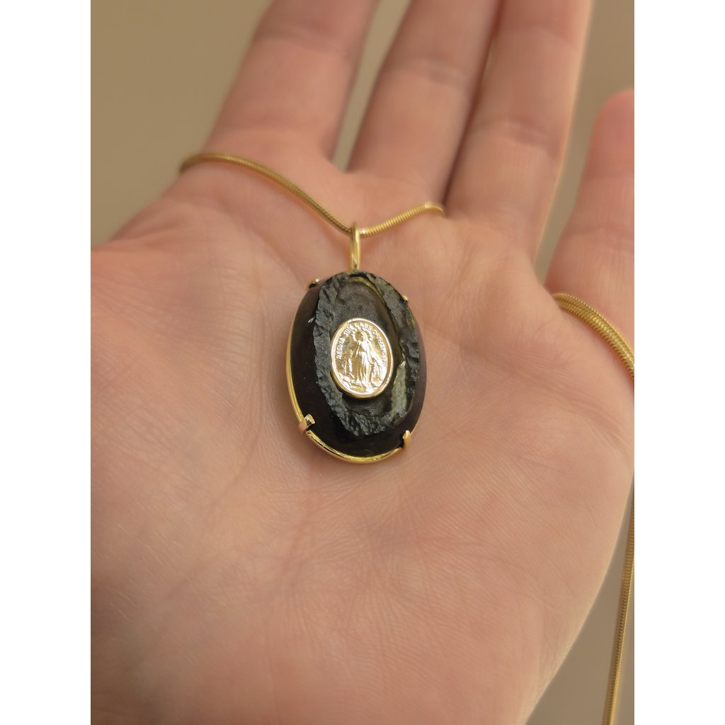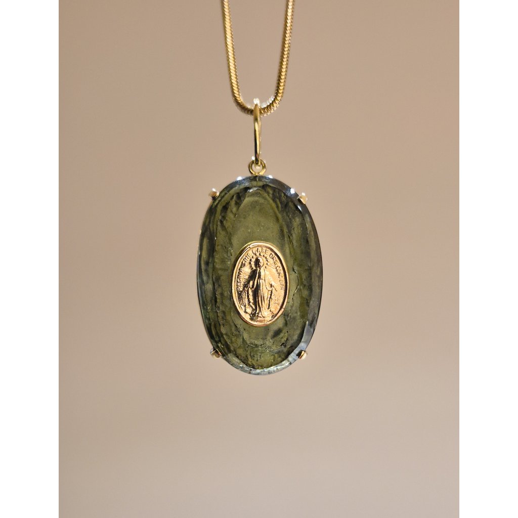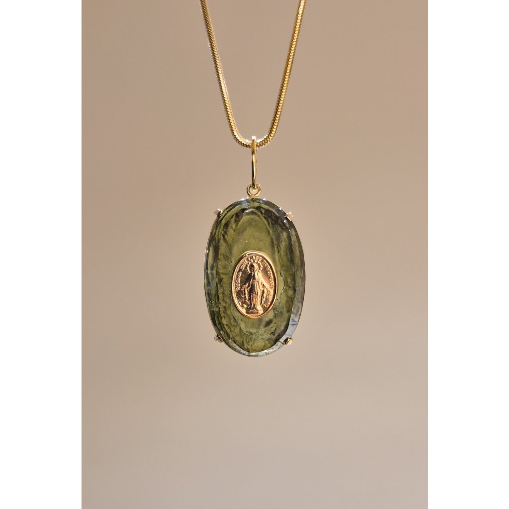 Tento zlatý přívěsek je vytvořen pro ty z Vás, kteří hledají výjimečnost i poselství. Synergie vltavínu a motivu Panny Marie vytváří šperk s hlubokou energií.