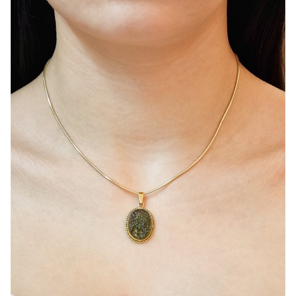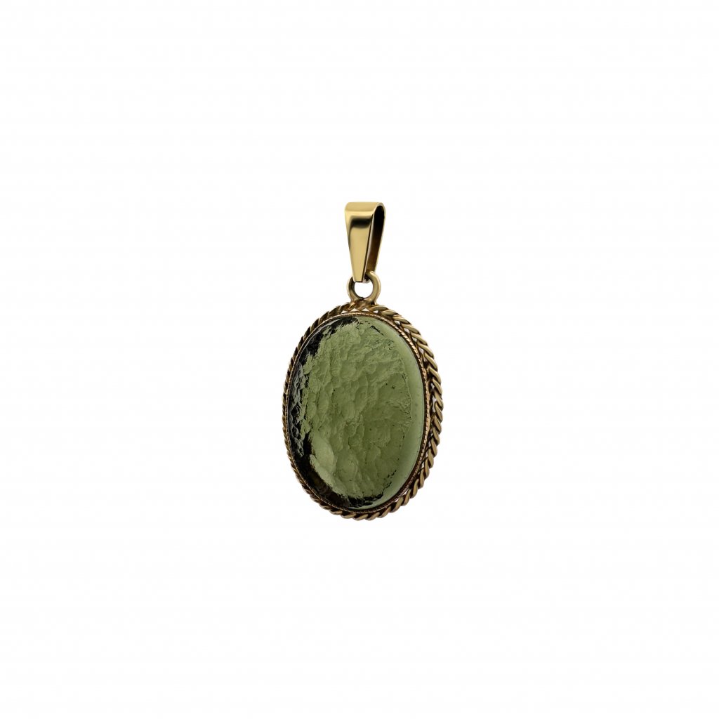 Zlatý přívěsek s vltavínem, polobrus 21 0063