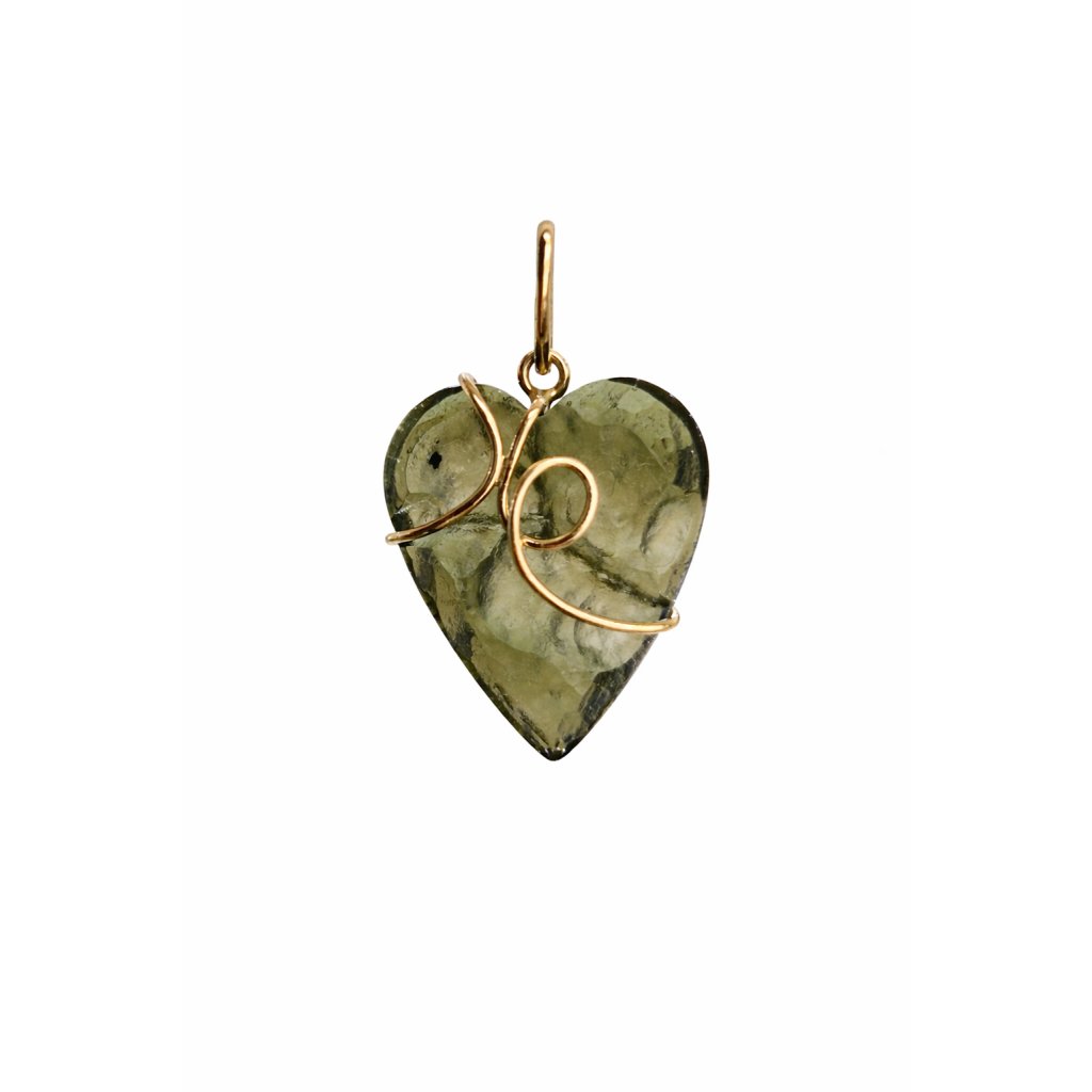Zlatý přívěsek s vltavínem srdce P25 0048