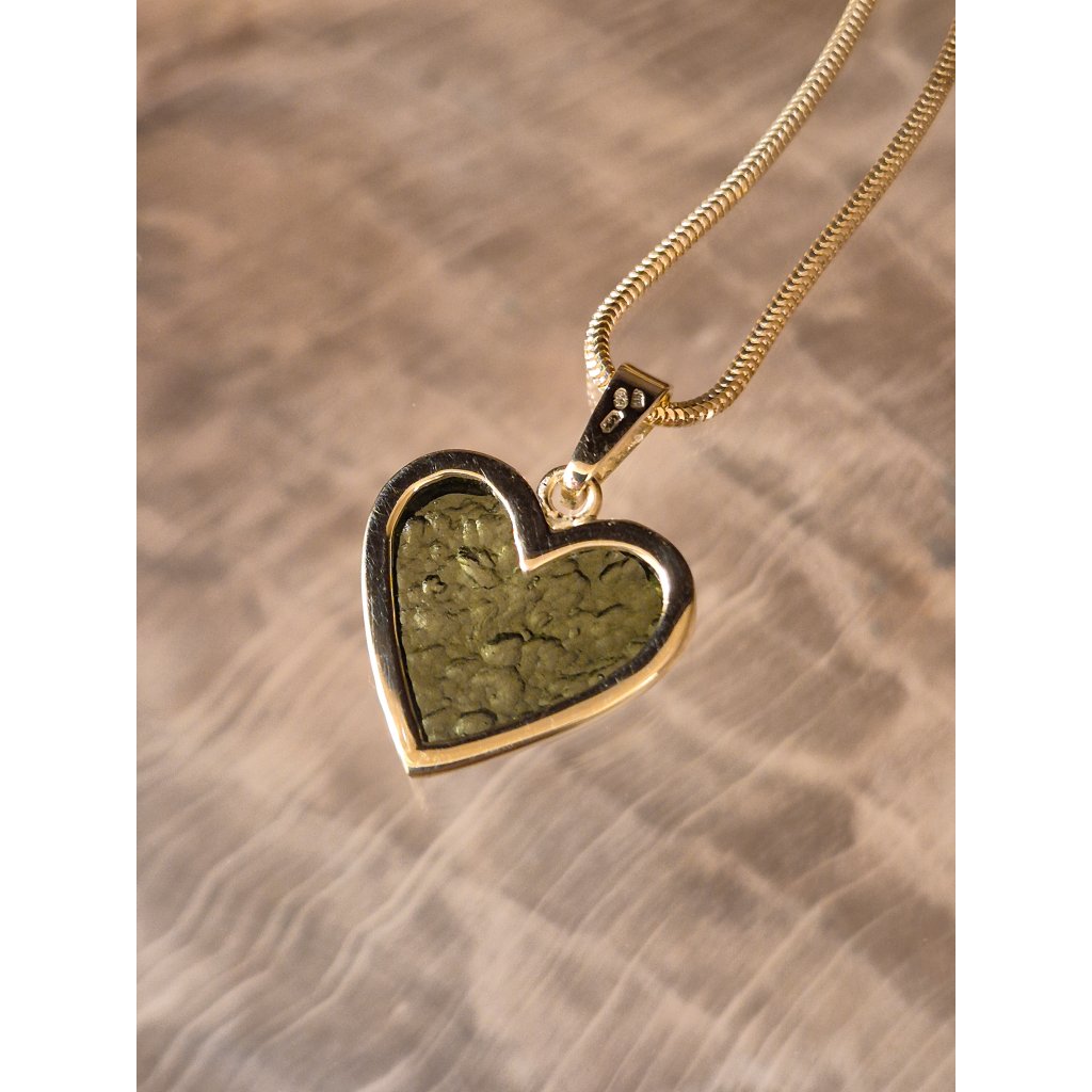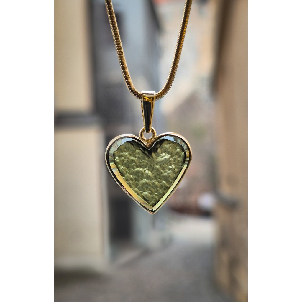 Věčné zlato, tajemný vltavín, symbolický tvar srdce – přívěsek, který řekne vše beze slov.
