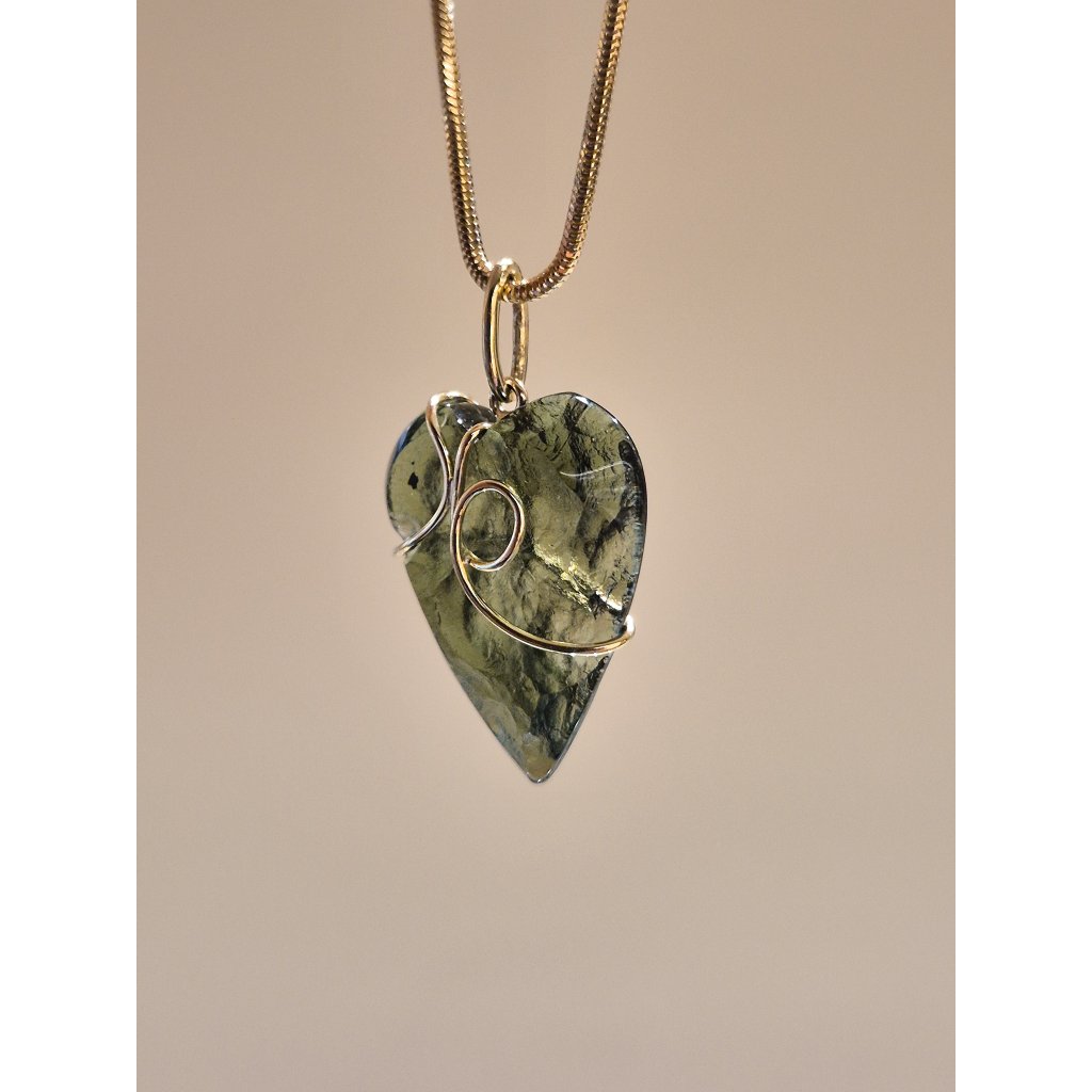 Zlatý přívěsek s vltavínem srdce P25 0048