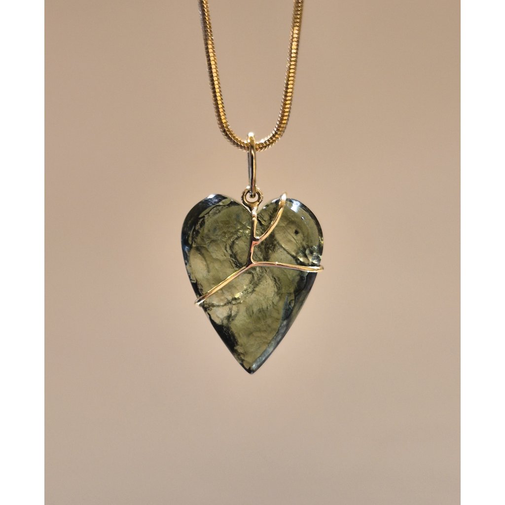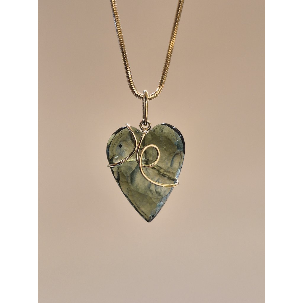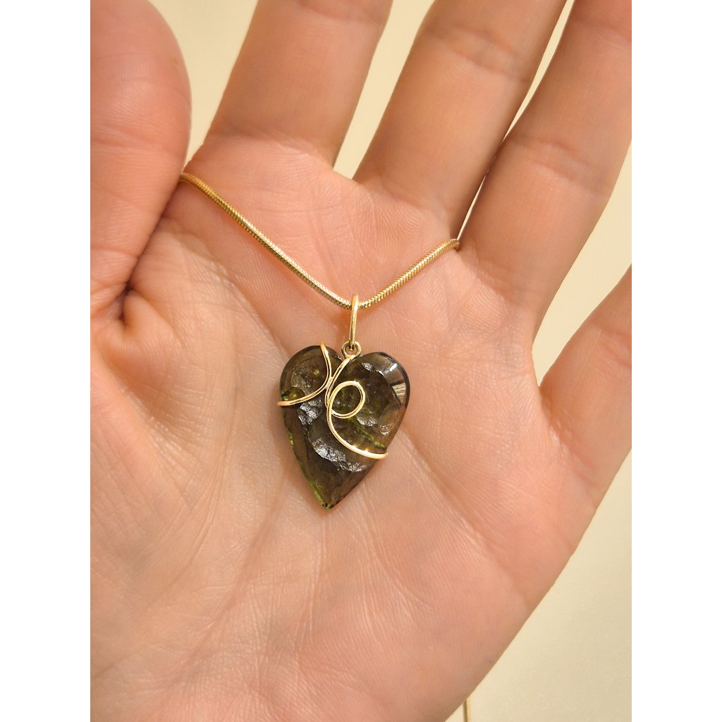 Zlatý přívěsek s vltavínem srdce P25 0048