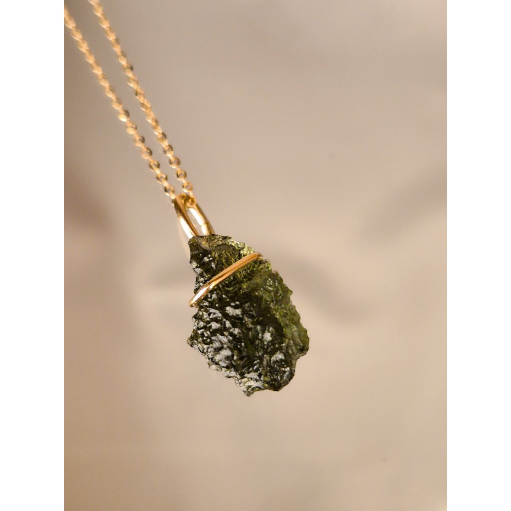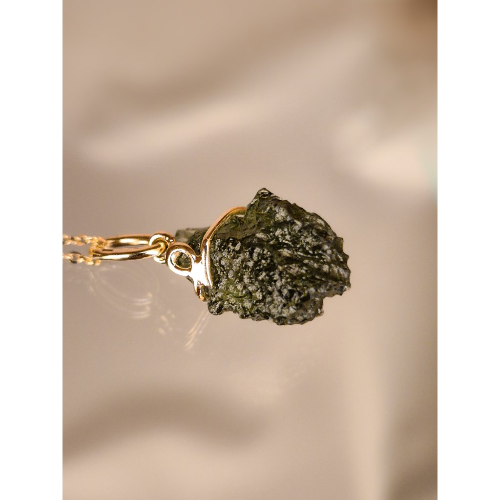 Objevte krásu vltavínového přívěsku ve zlatém provedení – šperk s nezaměnitelným půvabem.