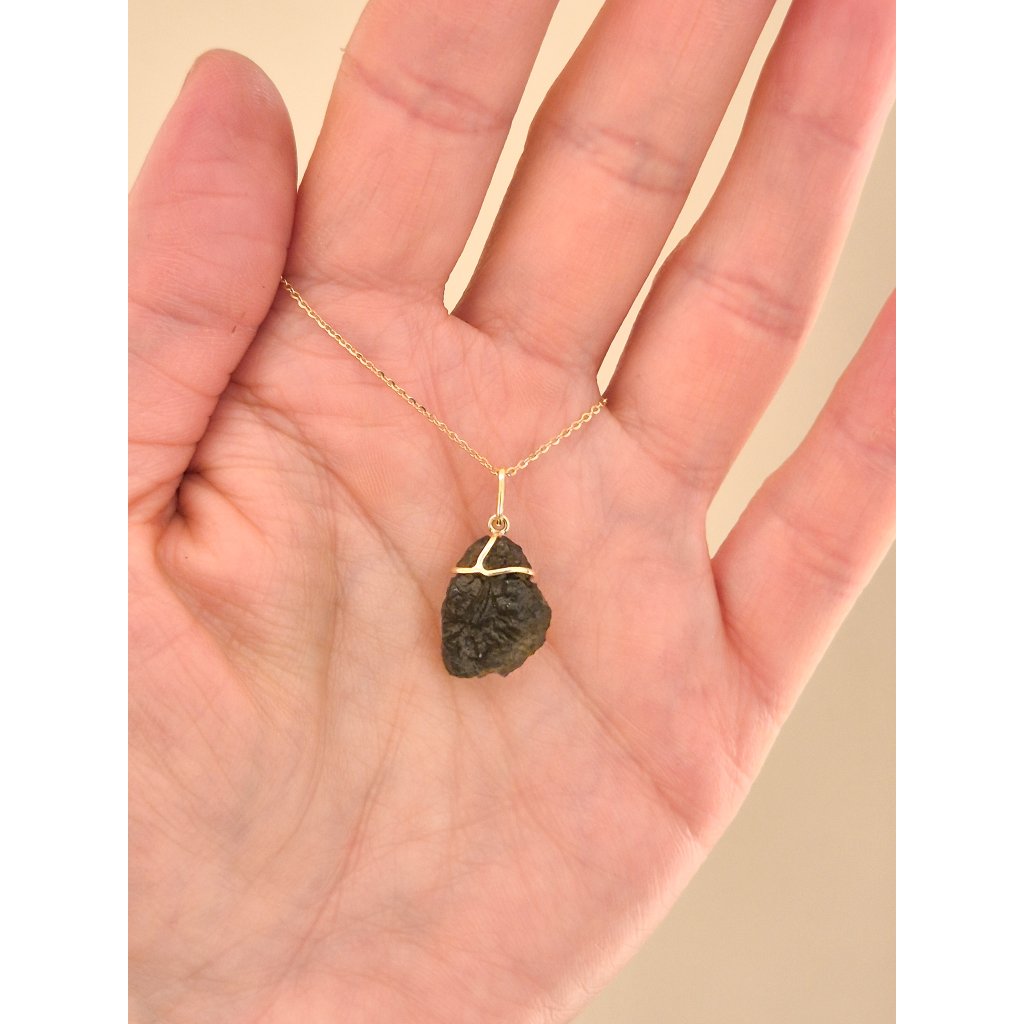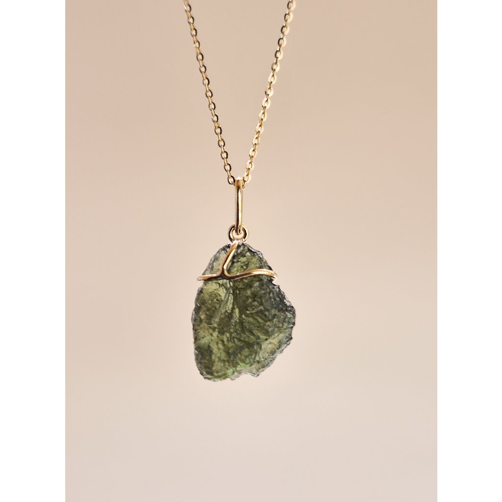 Vltavínový přívěsek ve zlatém provedení – exkluzivní doplněk, který upoutá pozornost.