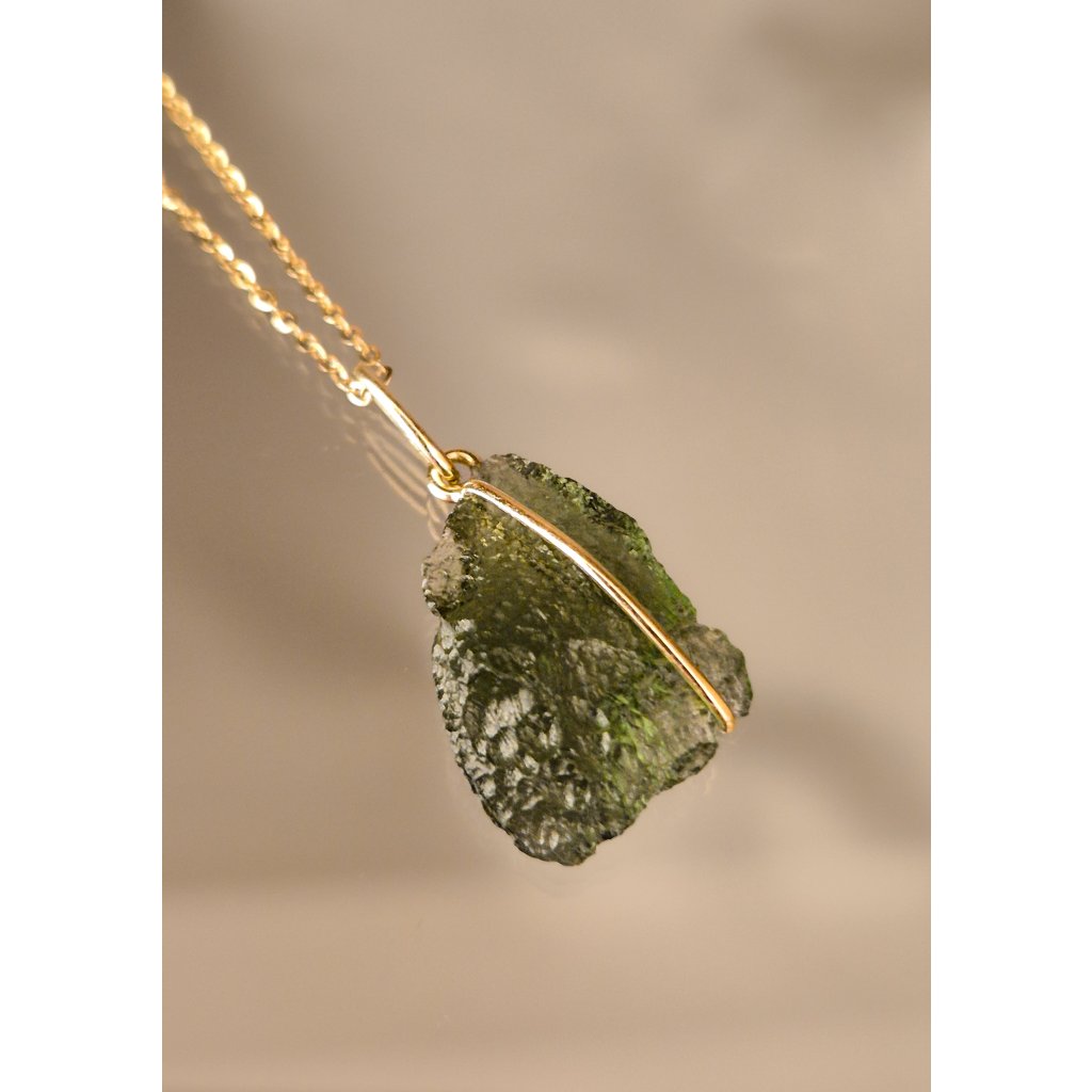 Luxusní přívěsek ze zlata s pravým českým vltavínem – šperk s nezaměnitelným kouzlem.