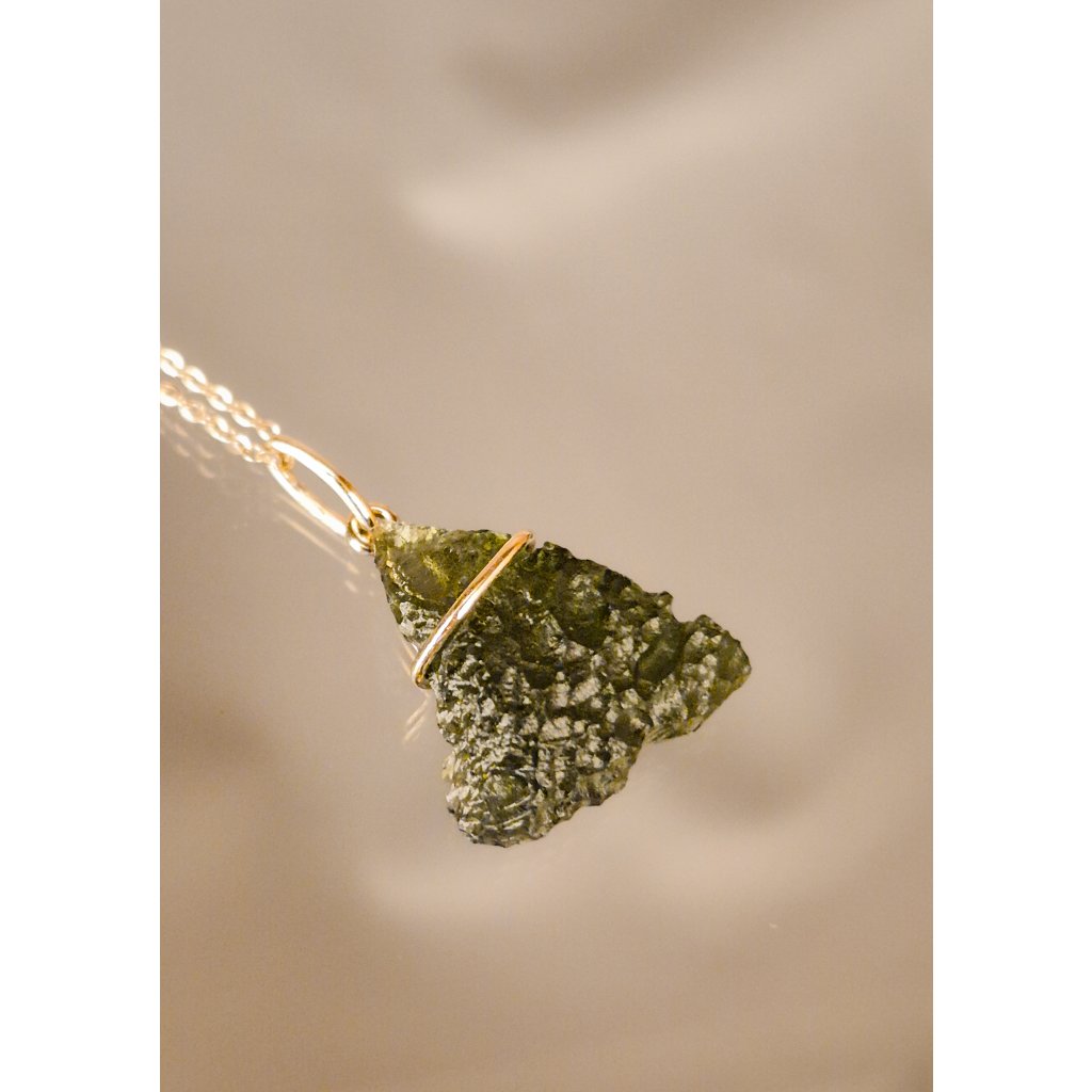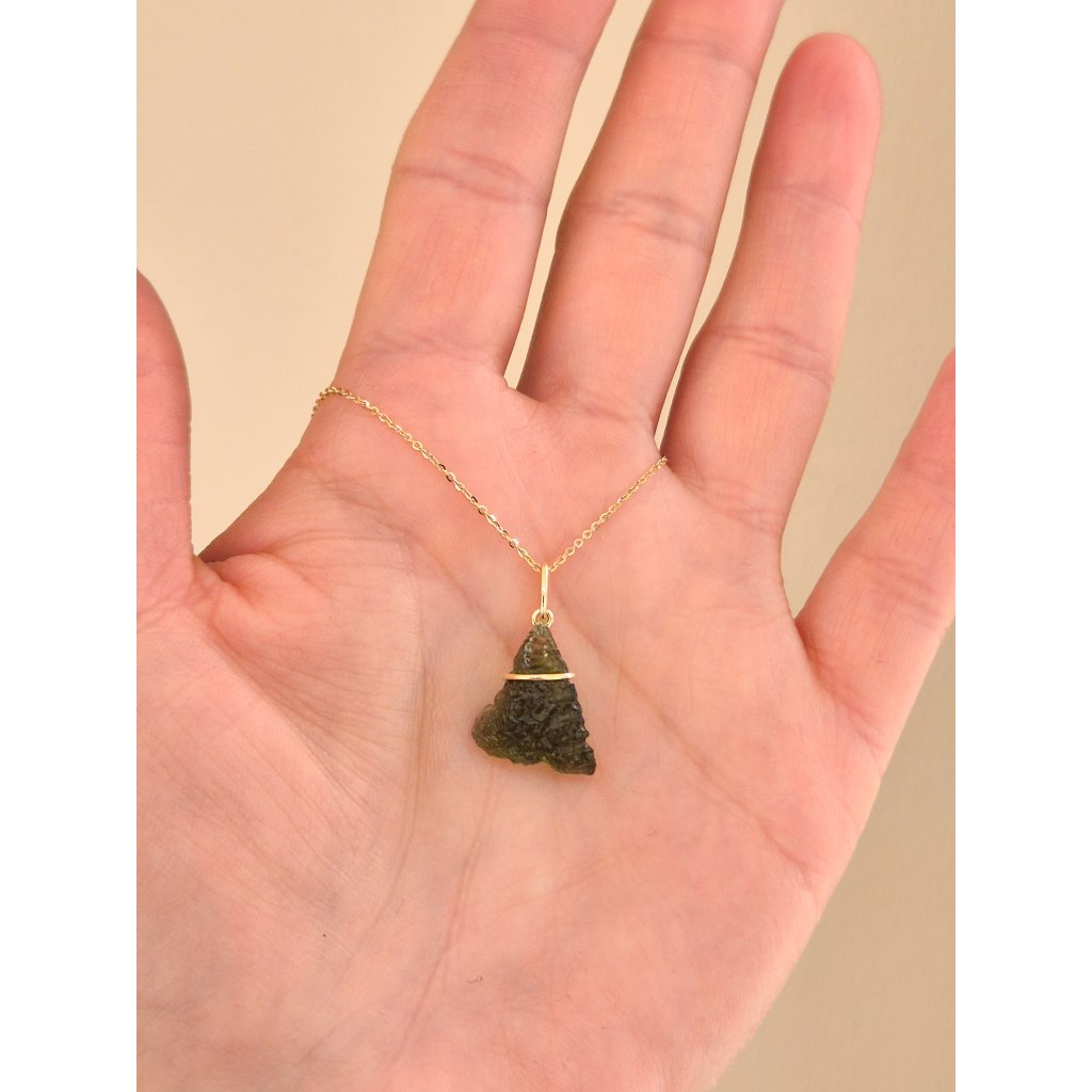 Objevte krásu přívěsku s vltavínem ve zlatém provedení – elegantní šperk pro každý den.
