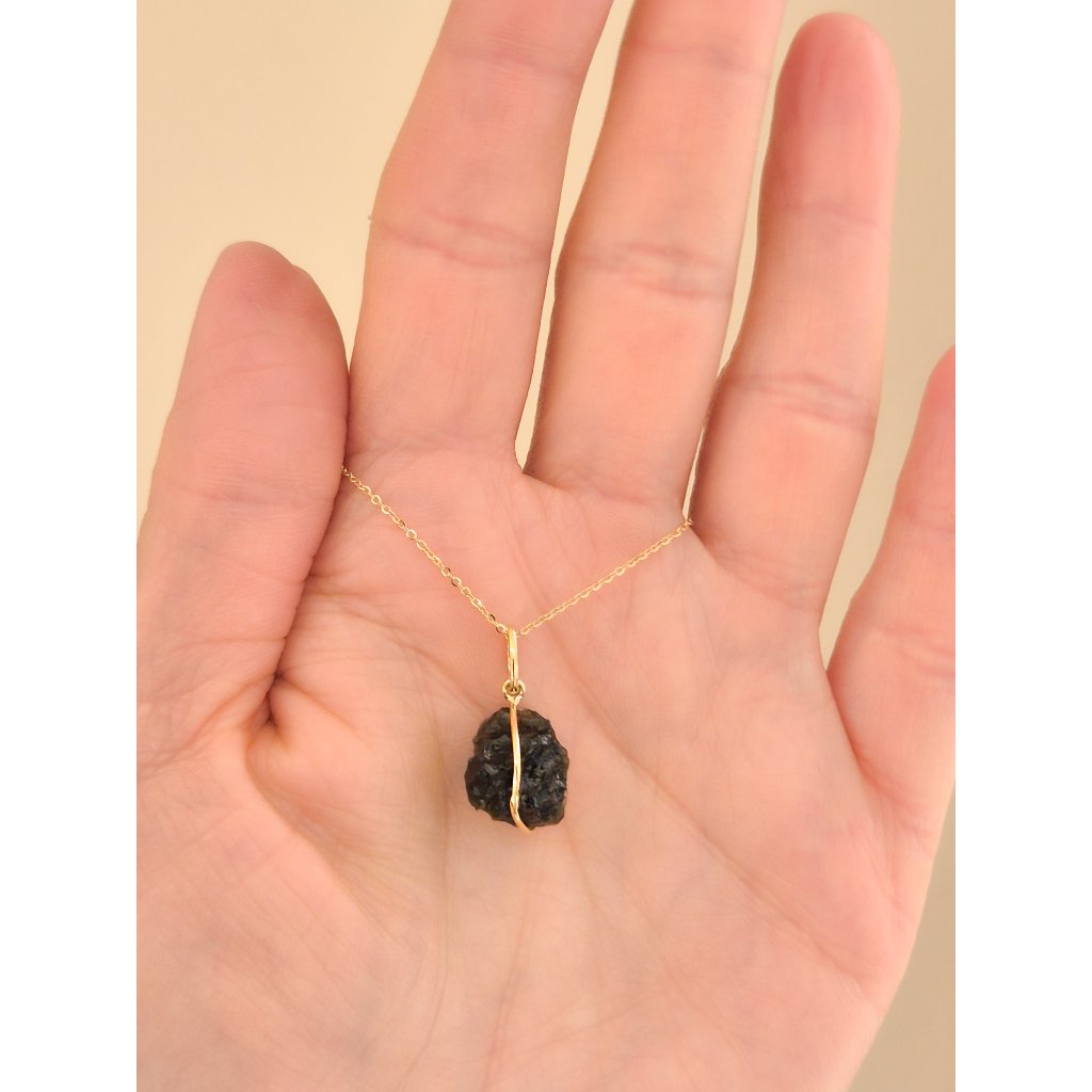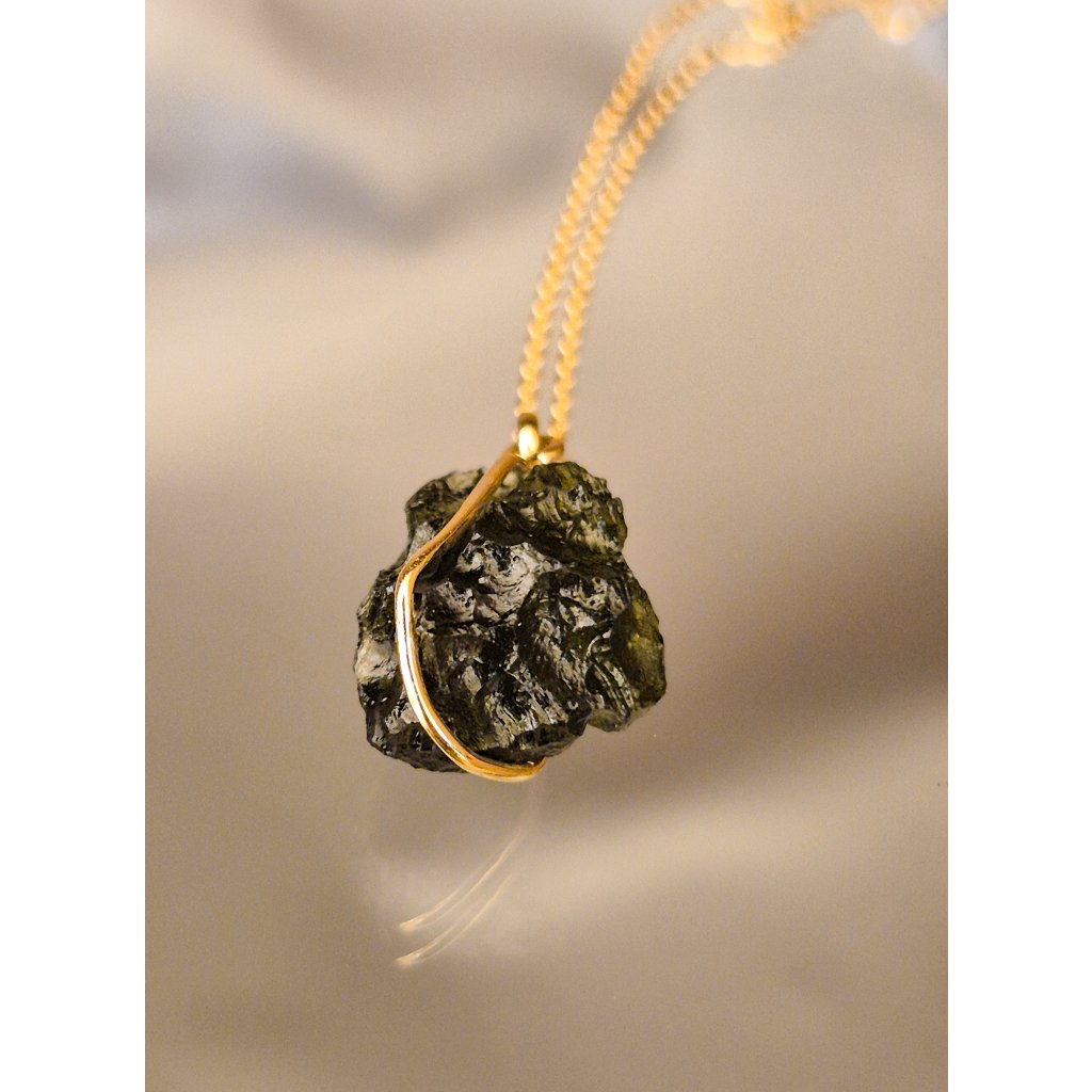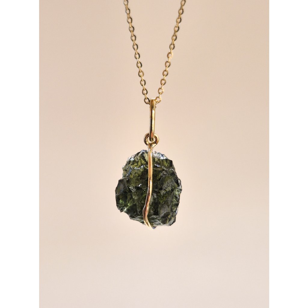 Minimaliastický zlatý přívěsek s pravým vltavínem – dokonalý dárek pro milovníky přírodních kamenů.