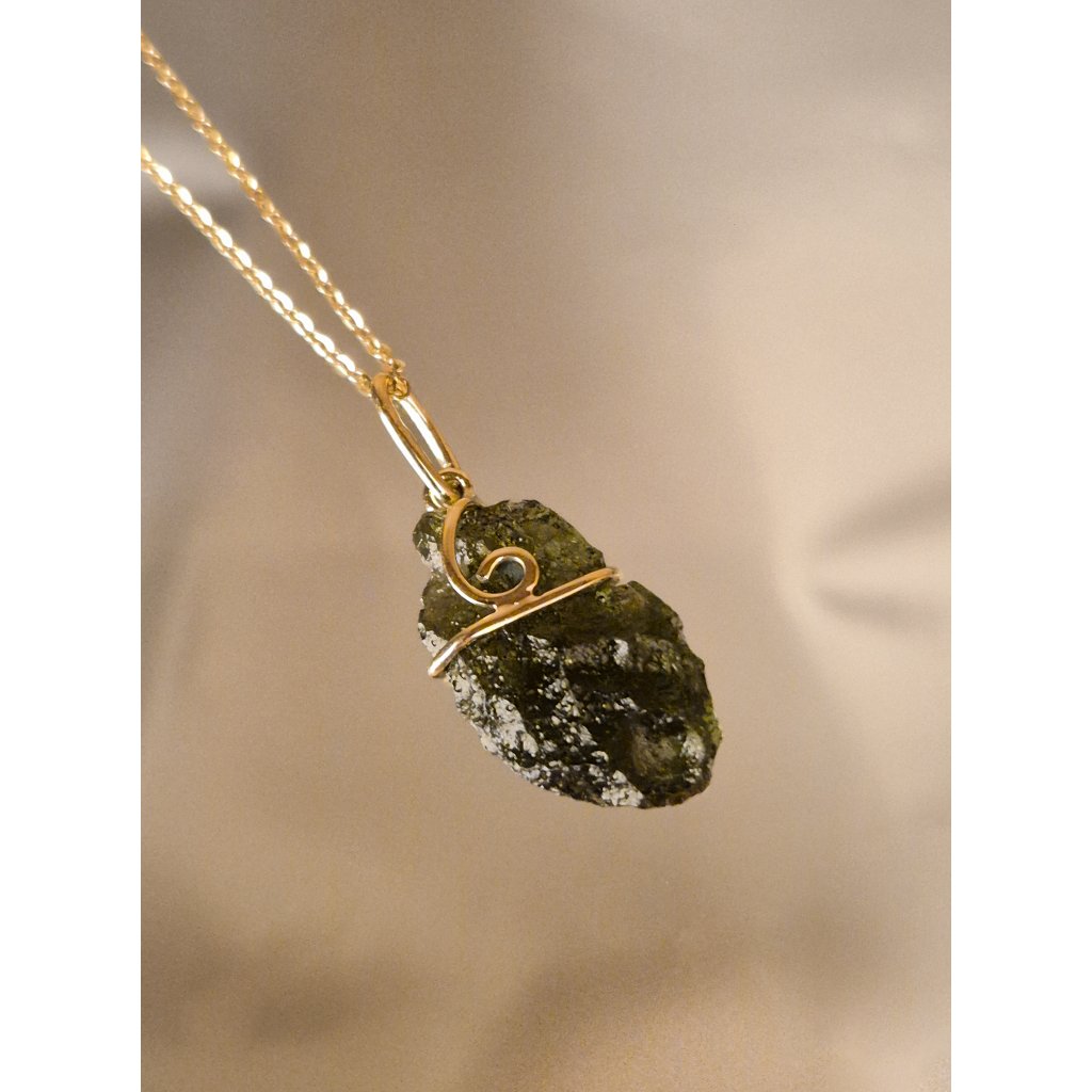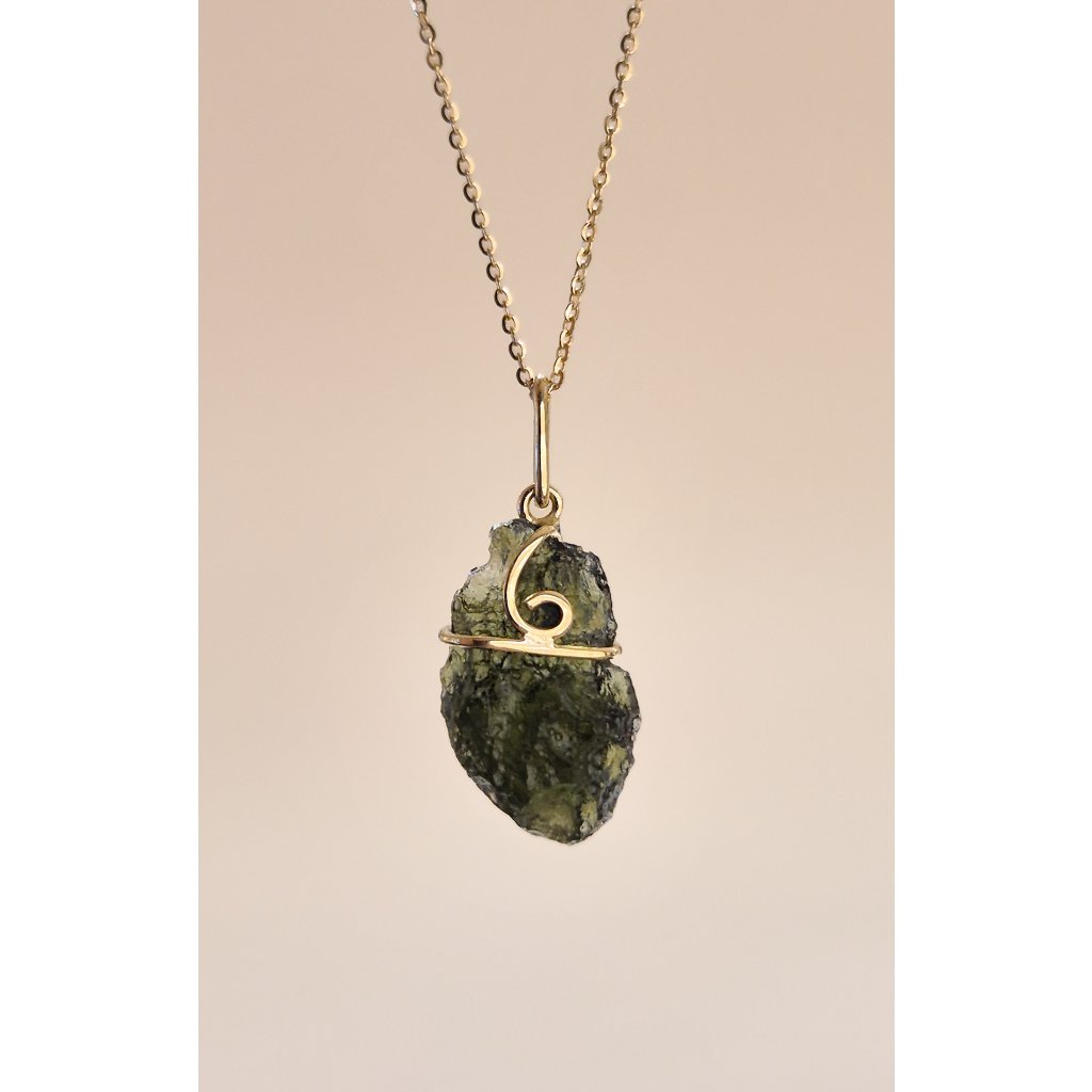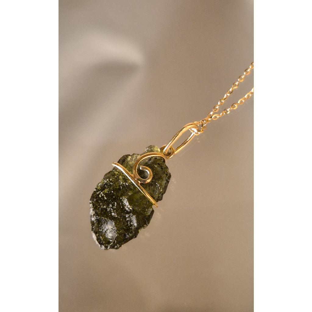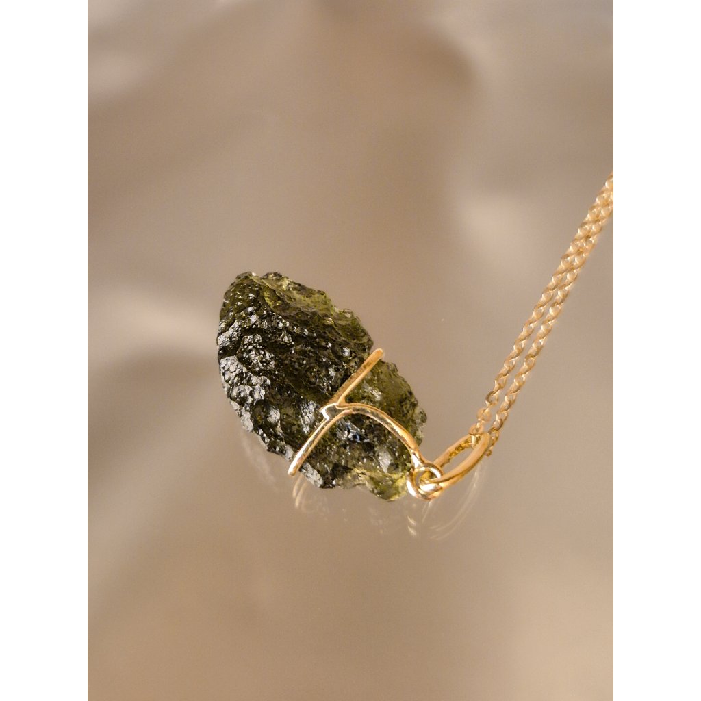 Unikátní vltavínový přívěsek ze zlata – přírodní krásu spojená s precizním zpracováním.