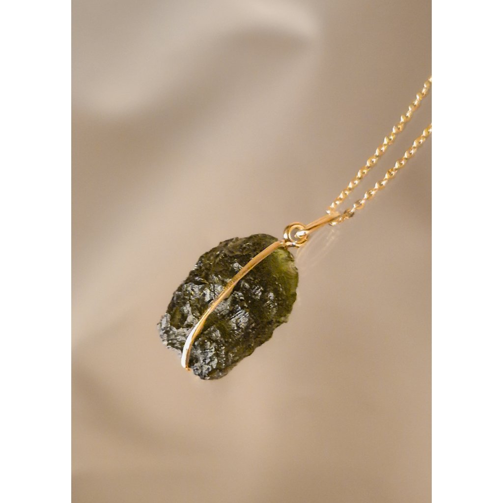 Vltavínový přívěsek ze zlata – nádherný klenot s mystickou zelenou září.