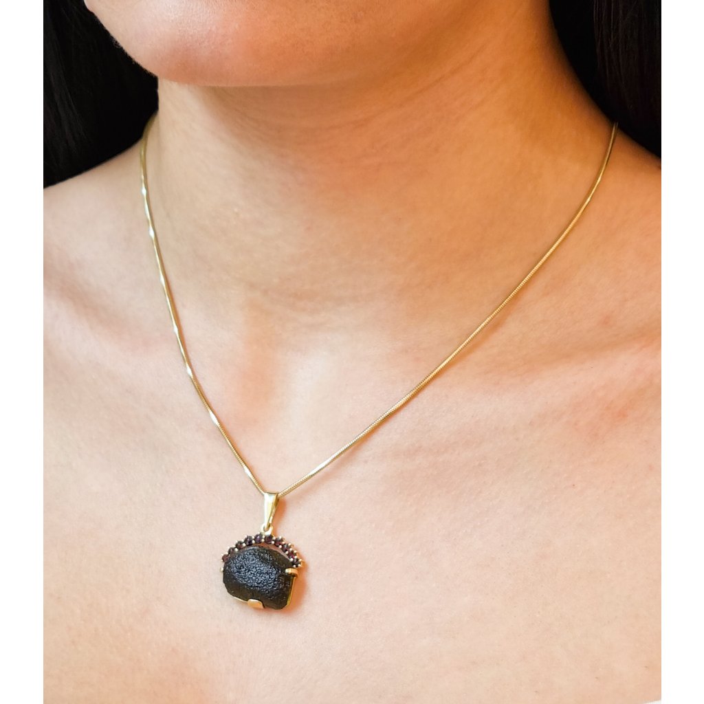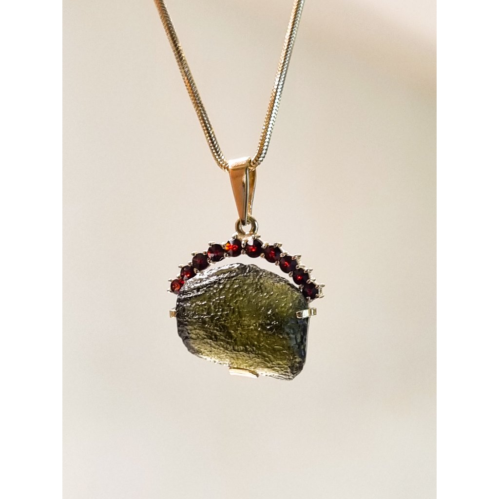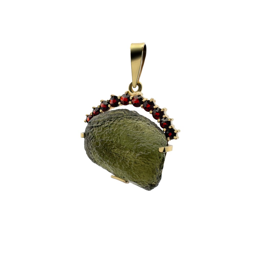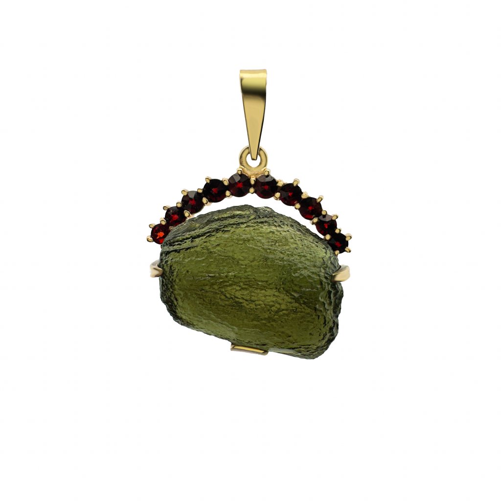 Zlatý přívěsek s vltavínem a granáty P21 0053