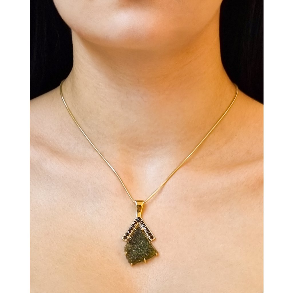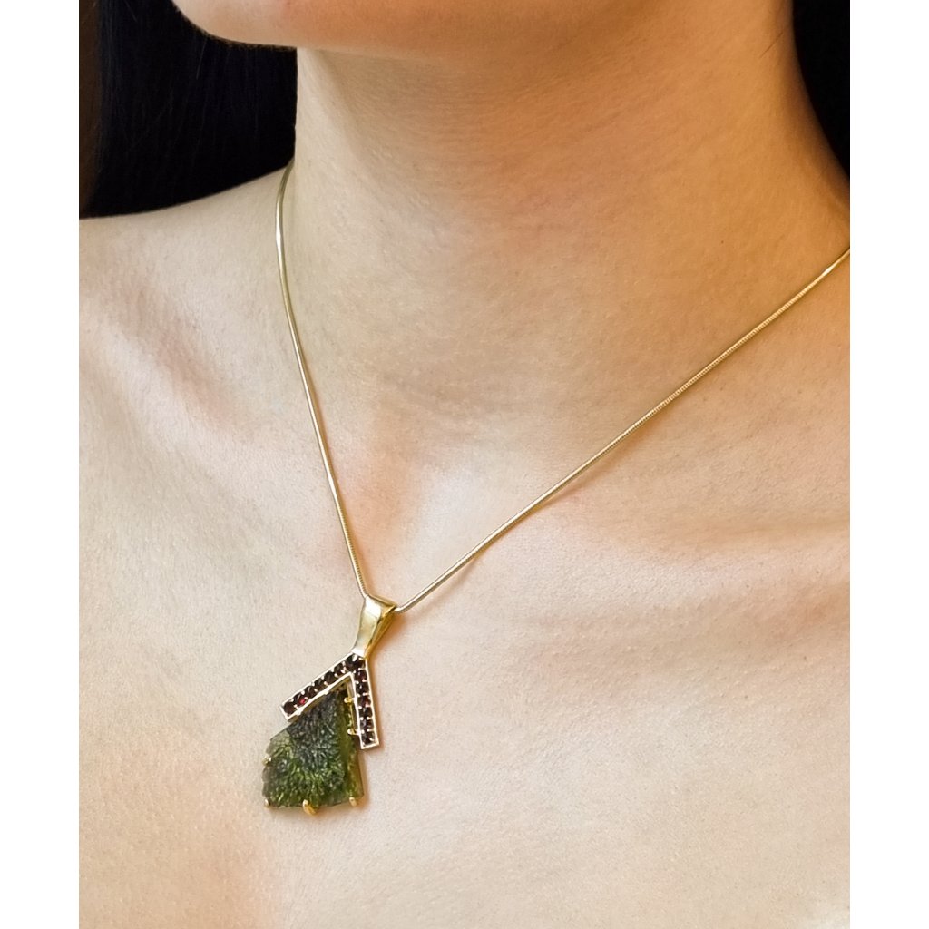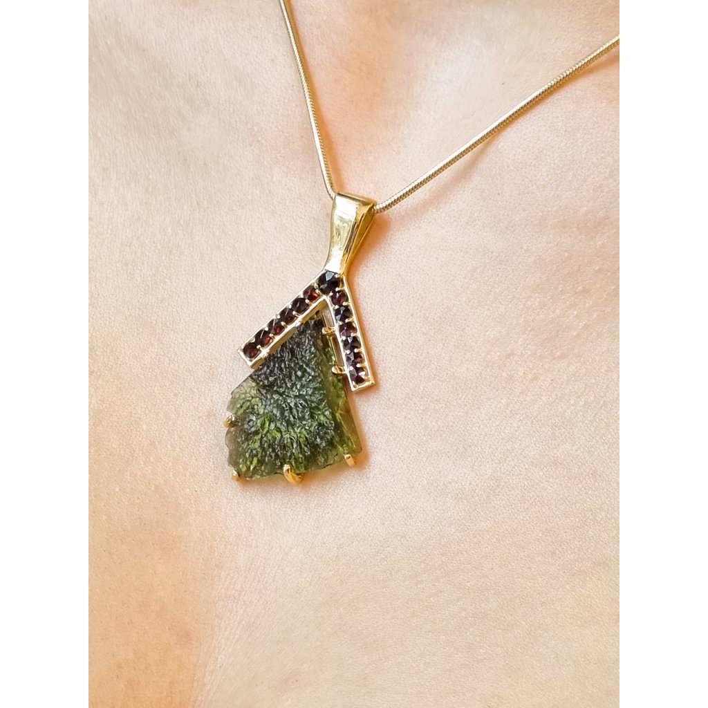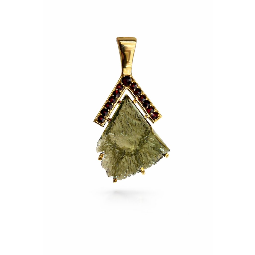 Zlatý přívěsek s vltavínem a granáty P25 0044