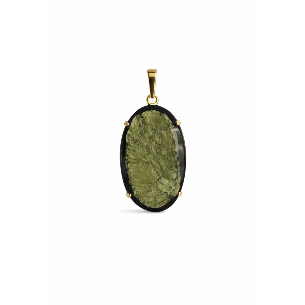Zlatý přívěsek s vltavínem, ovál, polobrus P21 0059