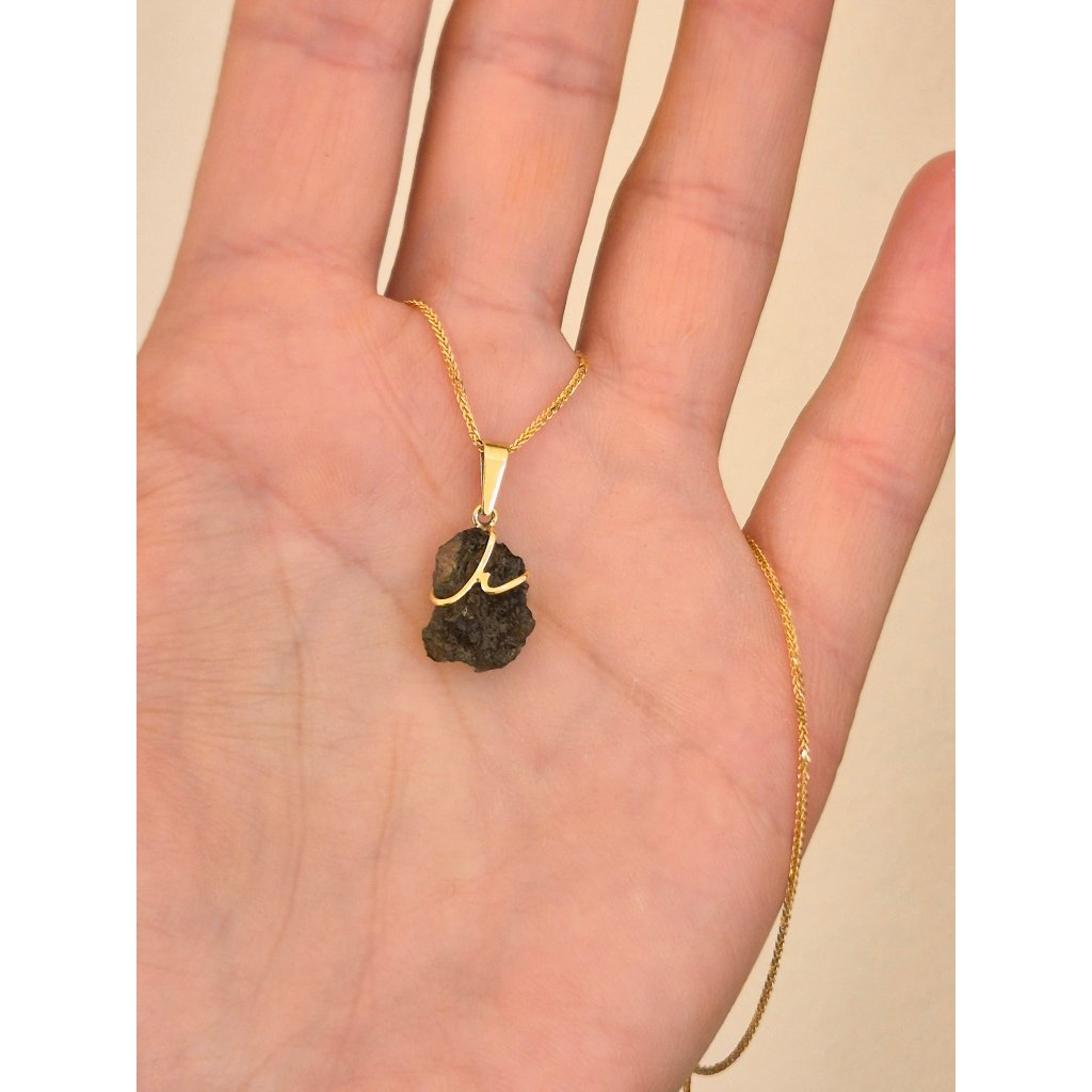 Váš zlatý přívěsek s neopracovaným vltavínem je spojením síly přírody a jemného luxusu. Každý kámen má svůj jedinečný tvar i energii, která Vás bude provázet každý den.