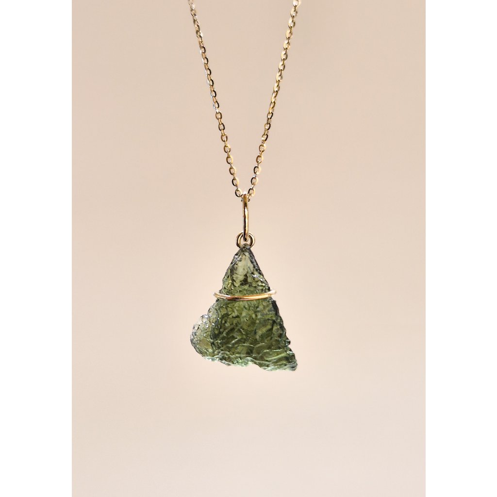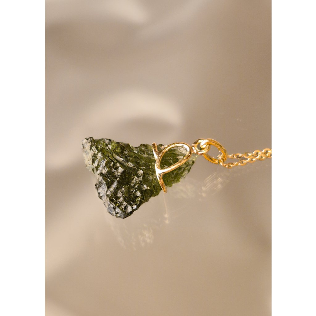 Objevte krásu přívěsku s vltavínem ve zlatém provedení – elegantní šperk pro každý den.