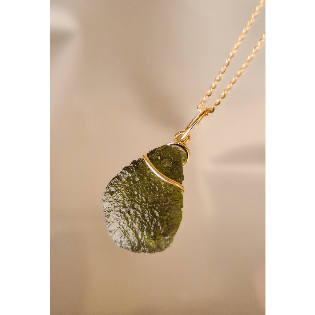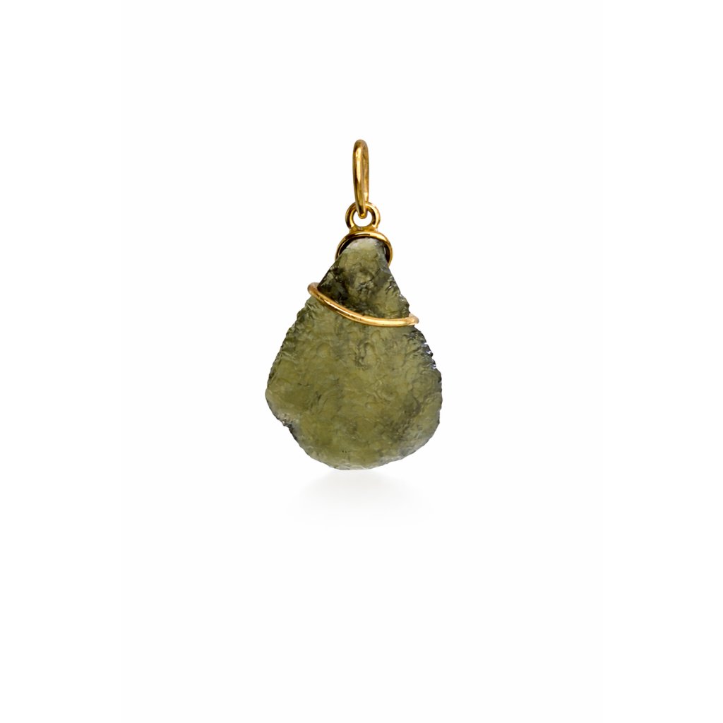 Elegantní zlatý přívěsek s pravým vltavínem – kouzlo české přírody v luxusním šperku.