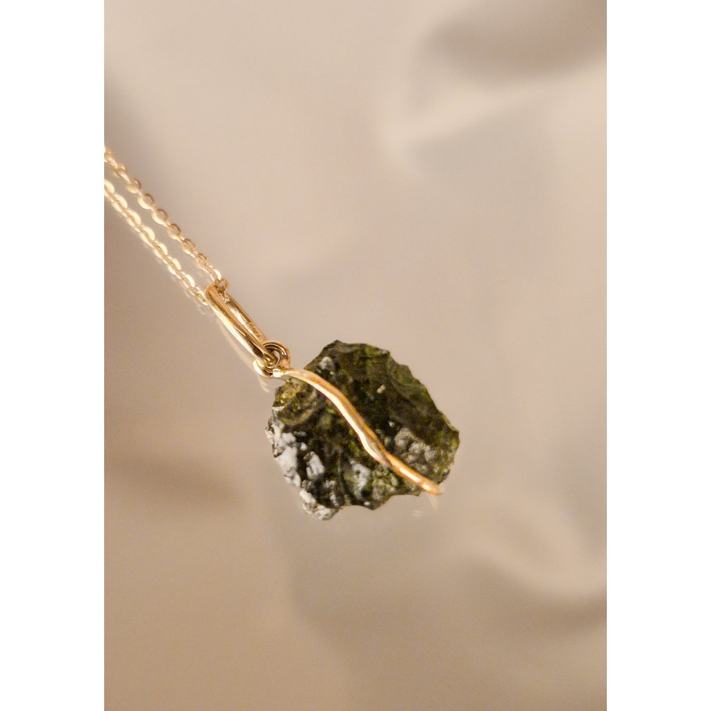 Minimaliastický zlatý přívěsek s pravým vltavínem – dokonalý dárek pro milovníky přírodních kamenů.