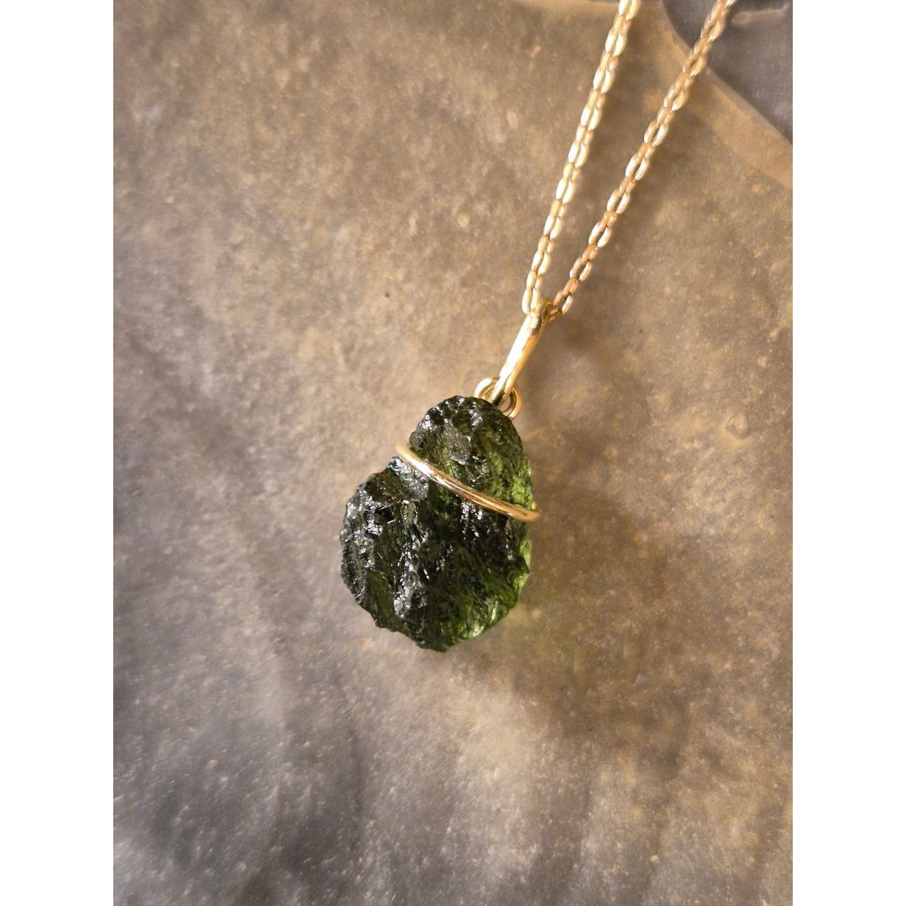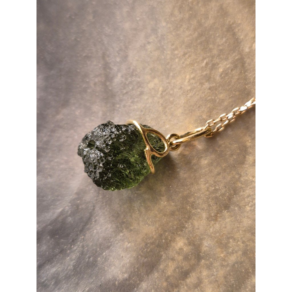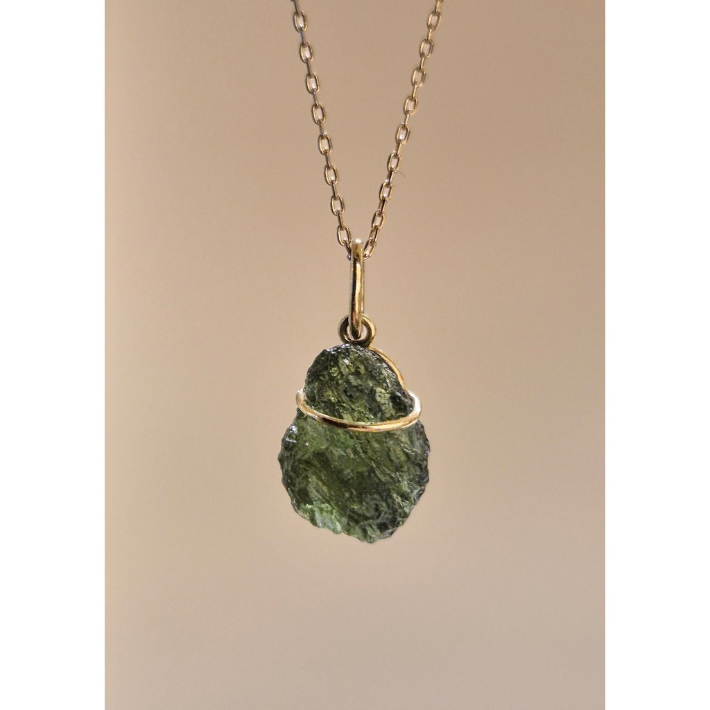 Neopracovaný vltavín zachycuje sílu přírody v jejím nejčistším projevu. Zlato mu dodává záři a eleganci.