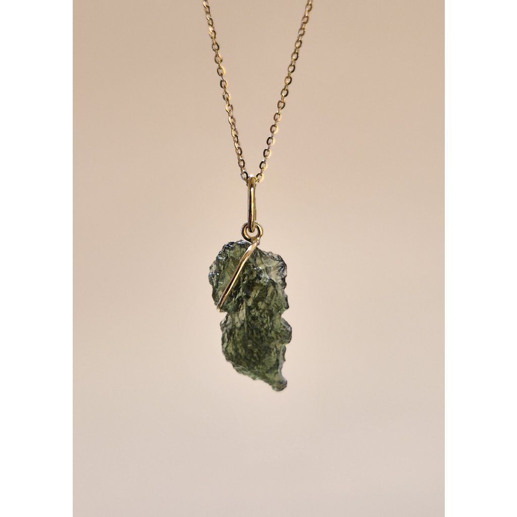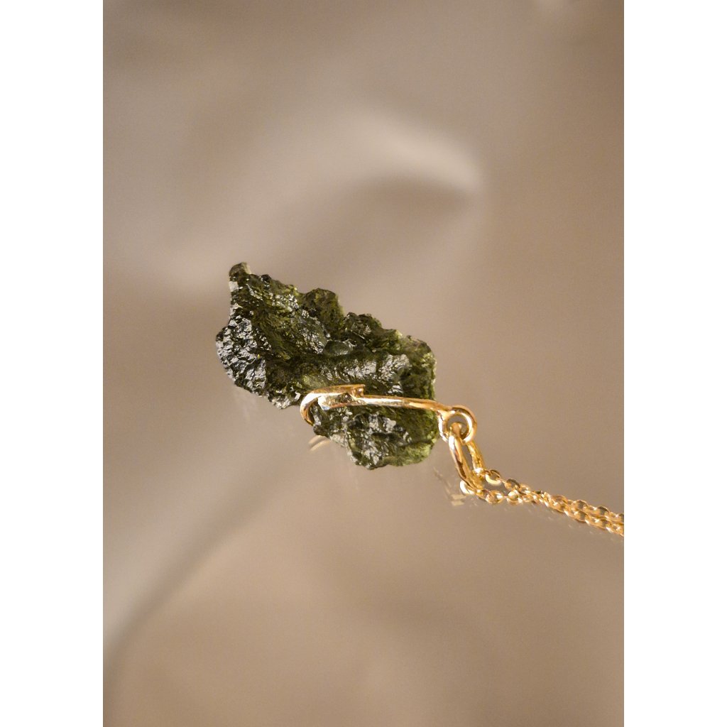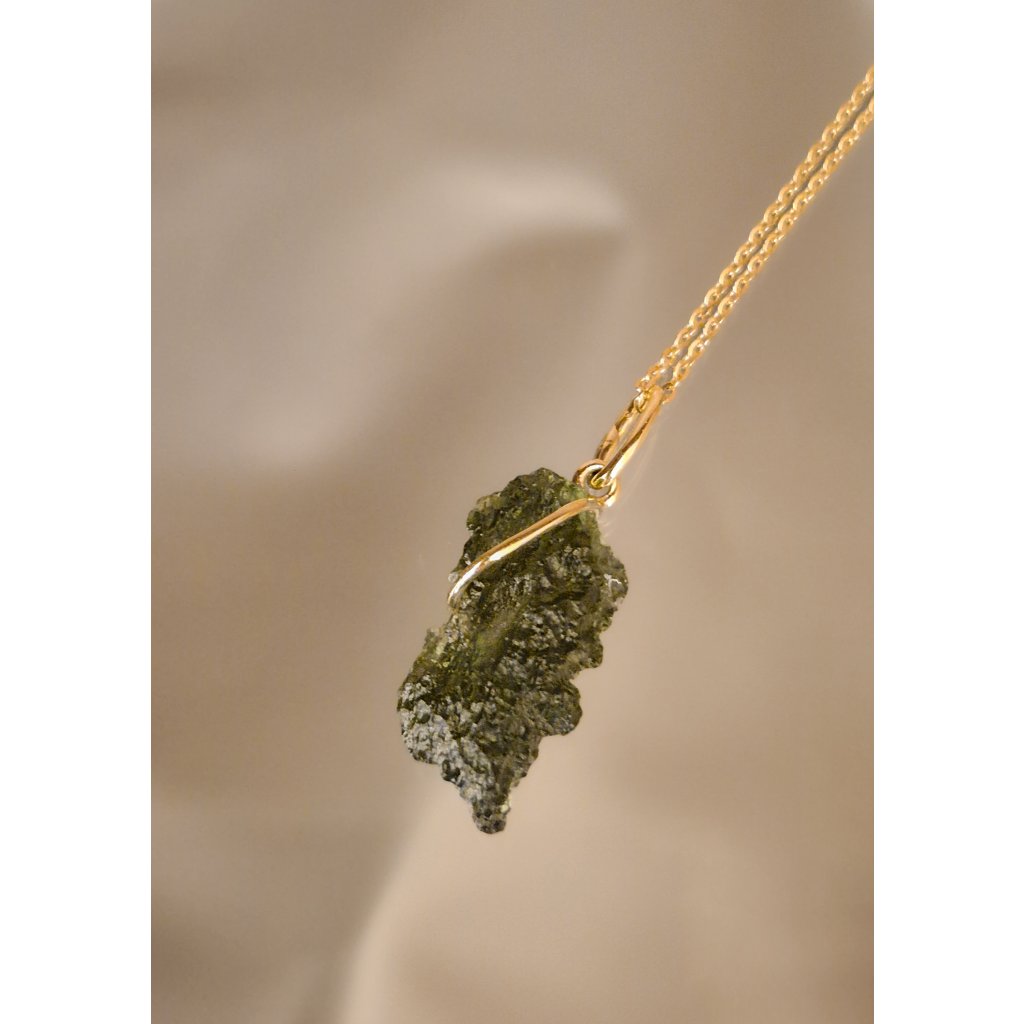 Luxusní přívěsek s vltavínem ve zlatém provedení – symbol elegance a kvality.