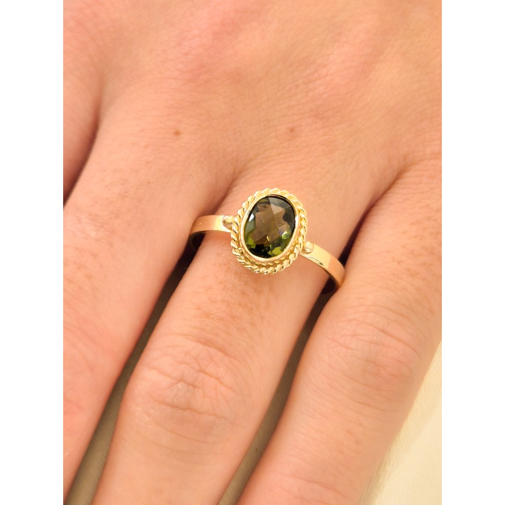 Zlatý prsten s broušeným vltavínem 2000344670004
