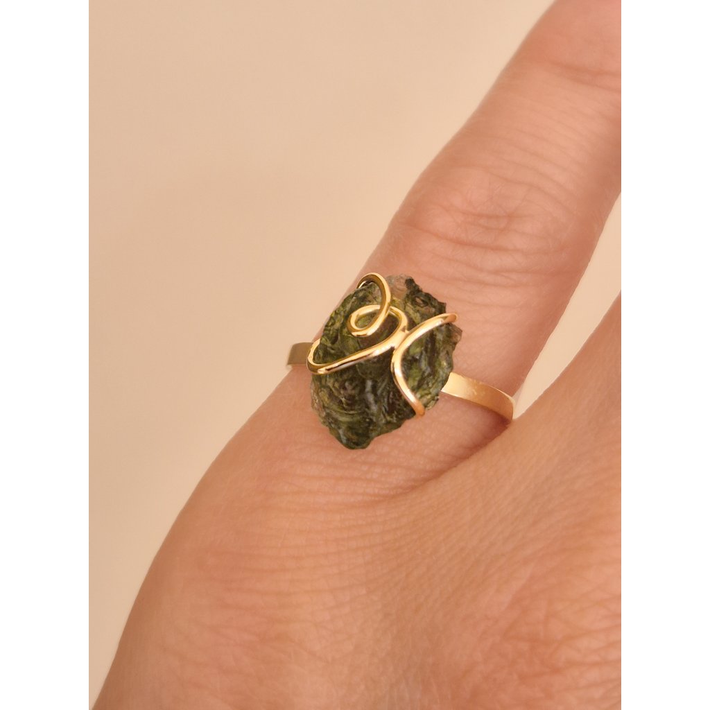 Buďte autentickými – prsten s nebroušeným vltavínem Vám dodá sílu být sami sebou.