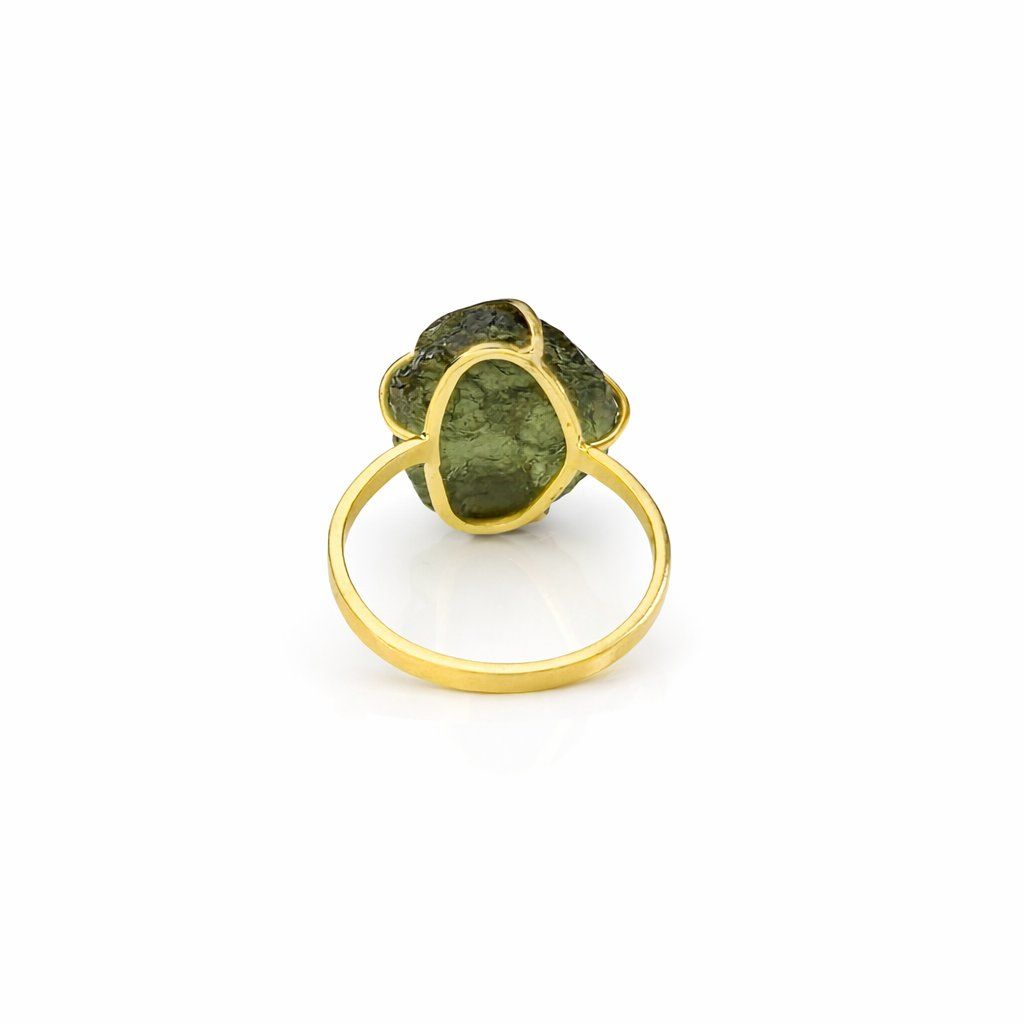 Autorský zlatý prsten s pravým vltavínem, vzniklý v české dílně jako pocta řemeslu, hodnotám a přírodní kráse.