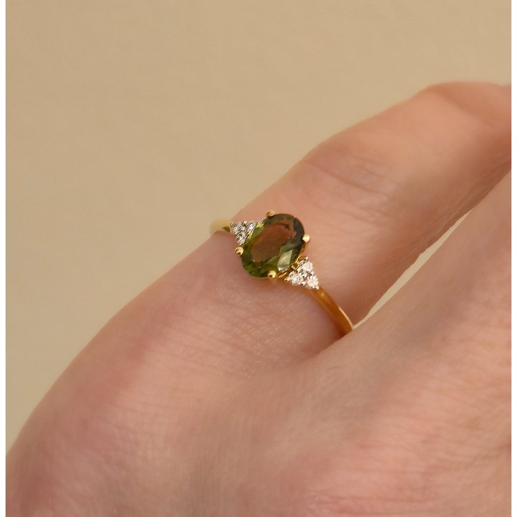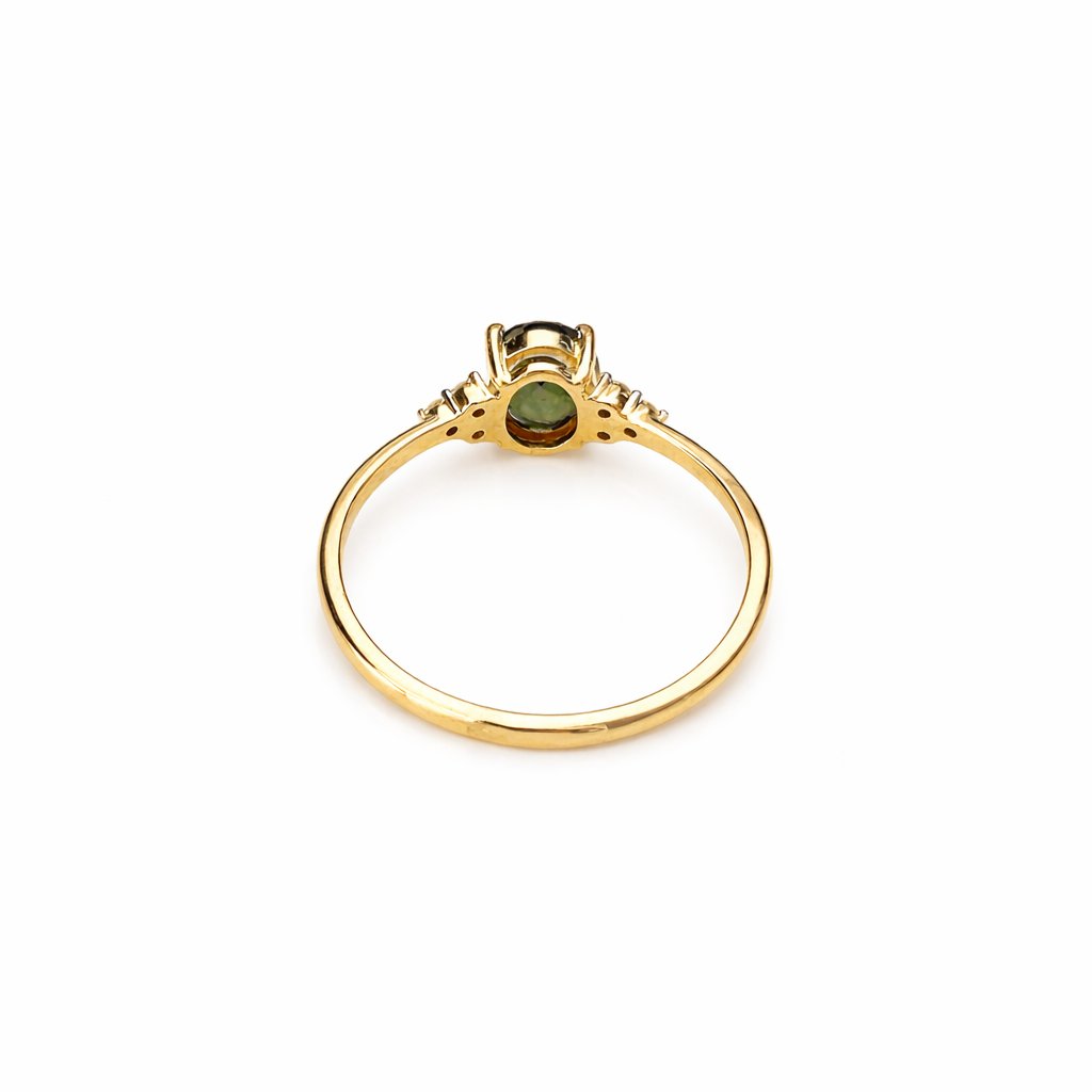 Broušený vltavín a diamanty ve zlatě, něžná elegance pro výjimečné chvíle.