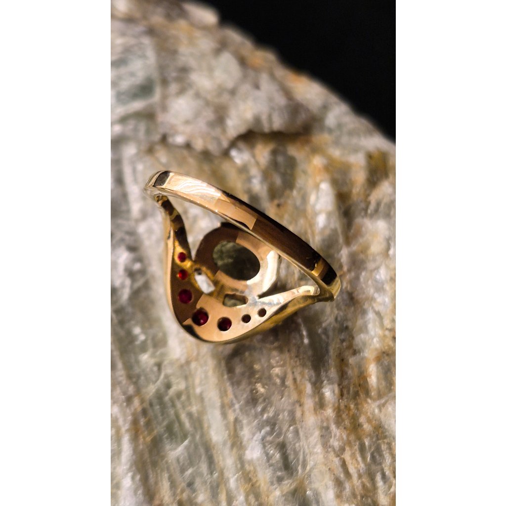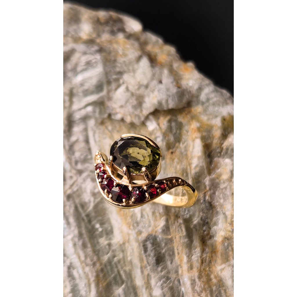 Zlatý prsten s vltavínem a granáty 2000347810001 P22 0093