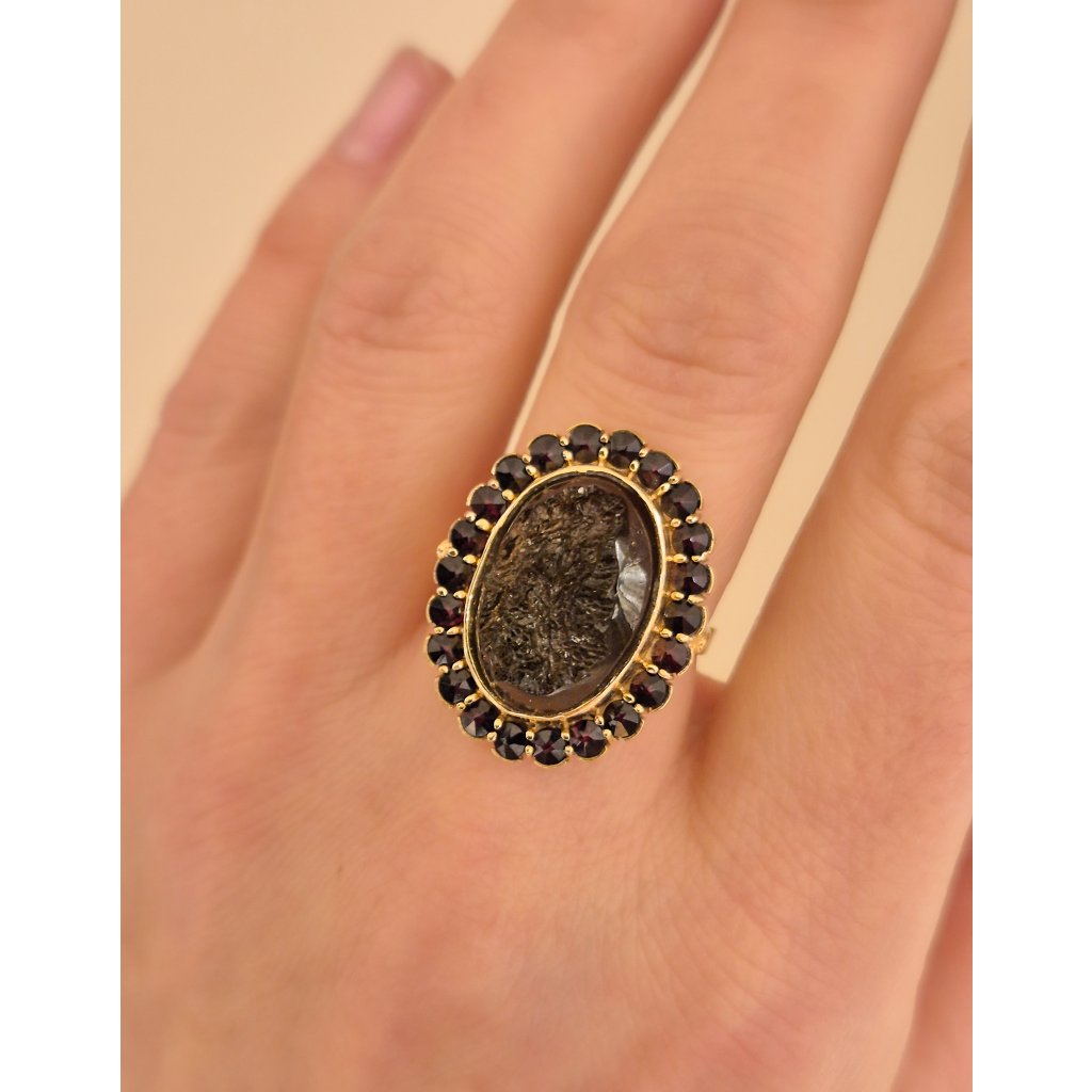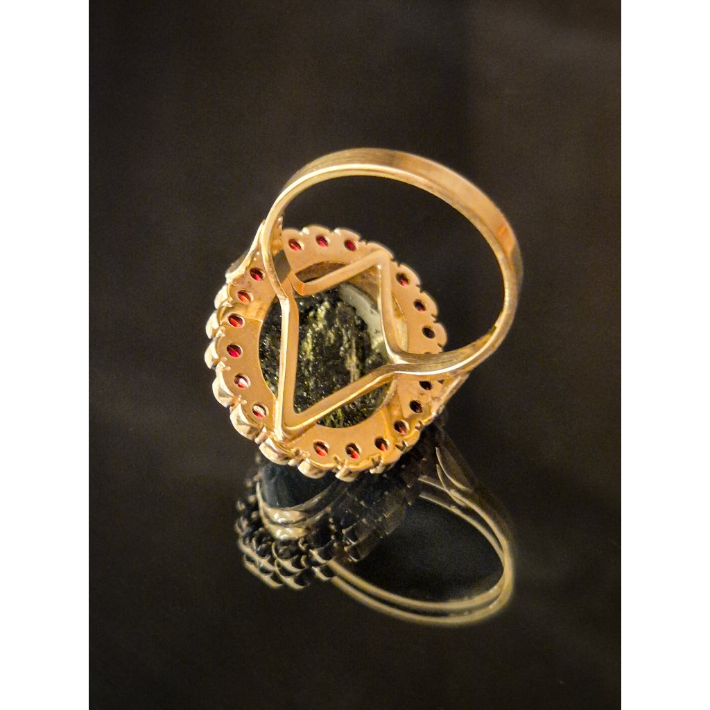 Zlatý prsten s vltavínem a granáty P22 0095